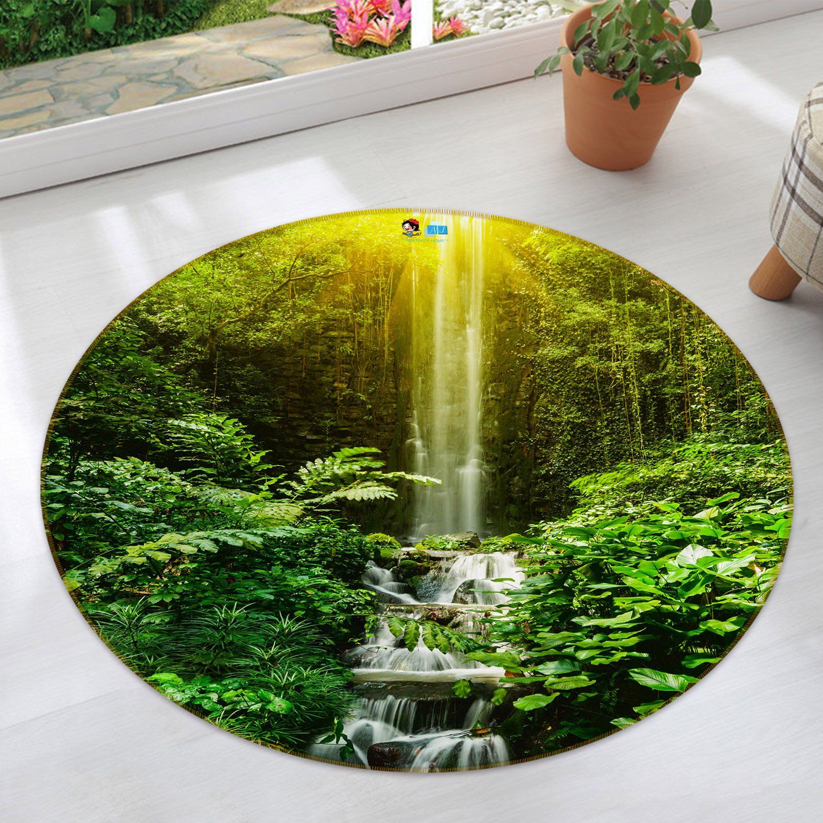 3d Jungle Waterfall 69052 Round Rug Home Decor