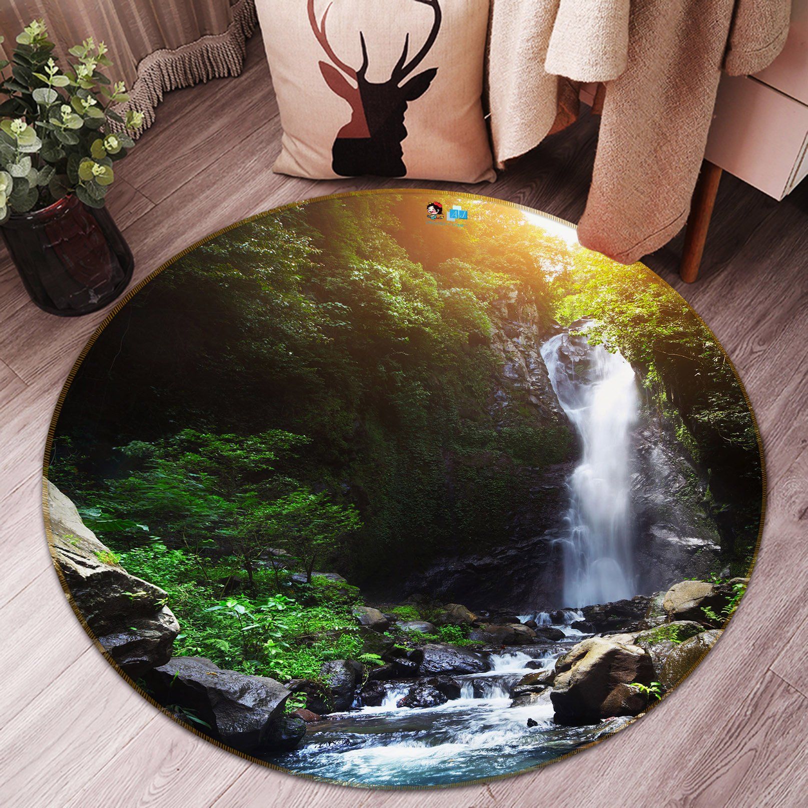 3d Jungle Waterfall 69161 Round Rug Home Decor