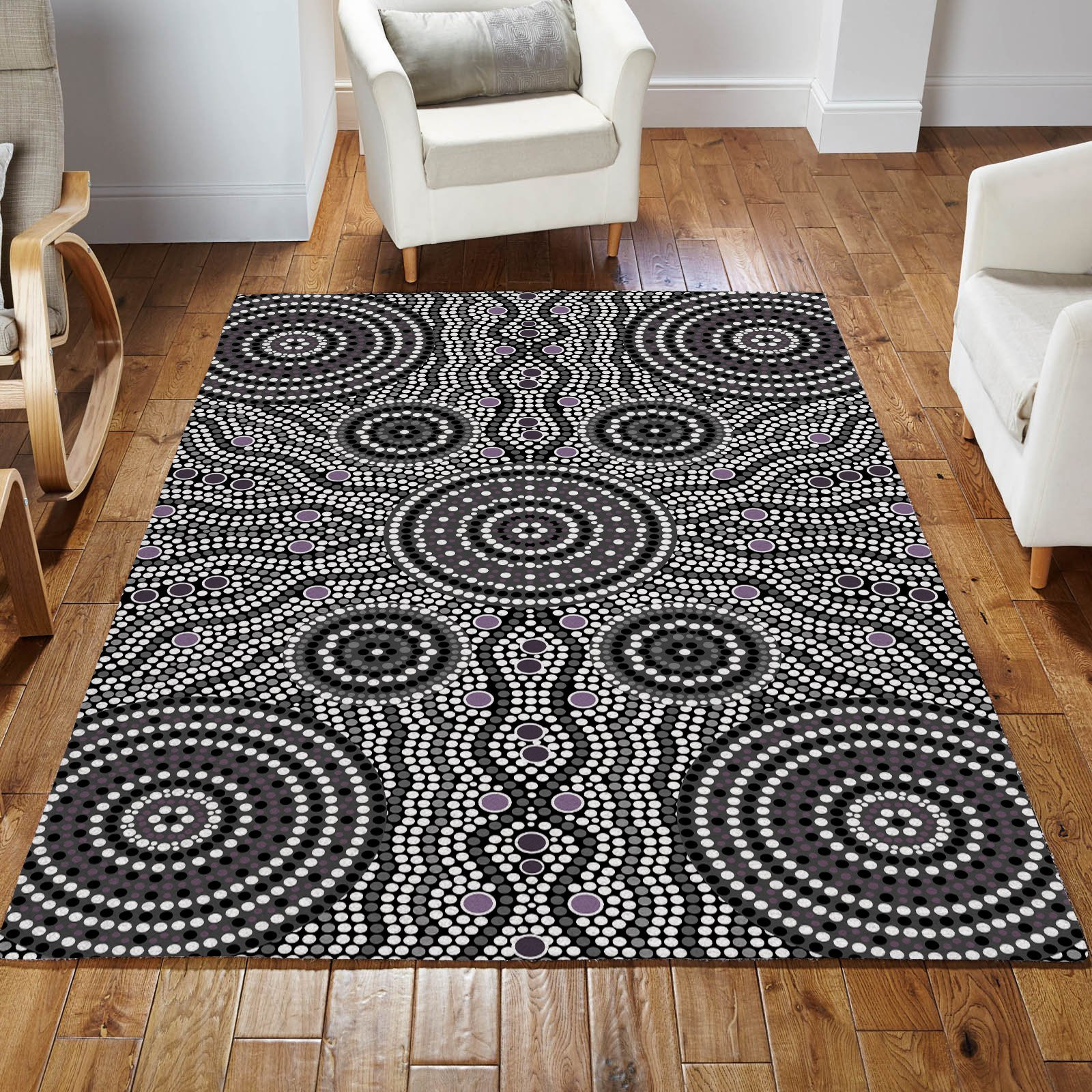 Aboriginal Grey Circle Dots Australia Indigenous Painting Art Rug Living Room Home Decor Living Room Home Decor