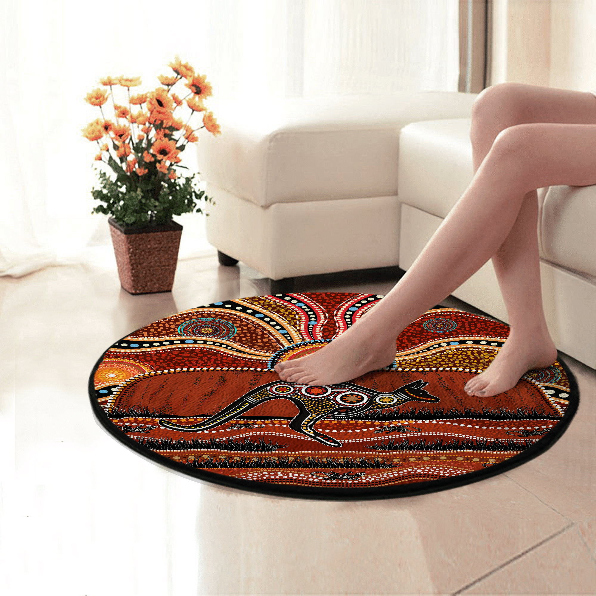 Aboriginal Kangaroo Running Lizard Australia Art Circle Rug Living Room Home Decor Living Room Home Decor
