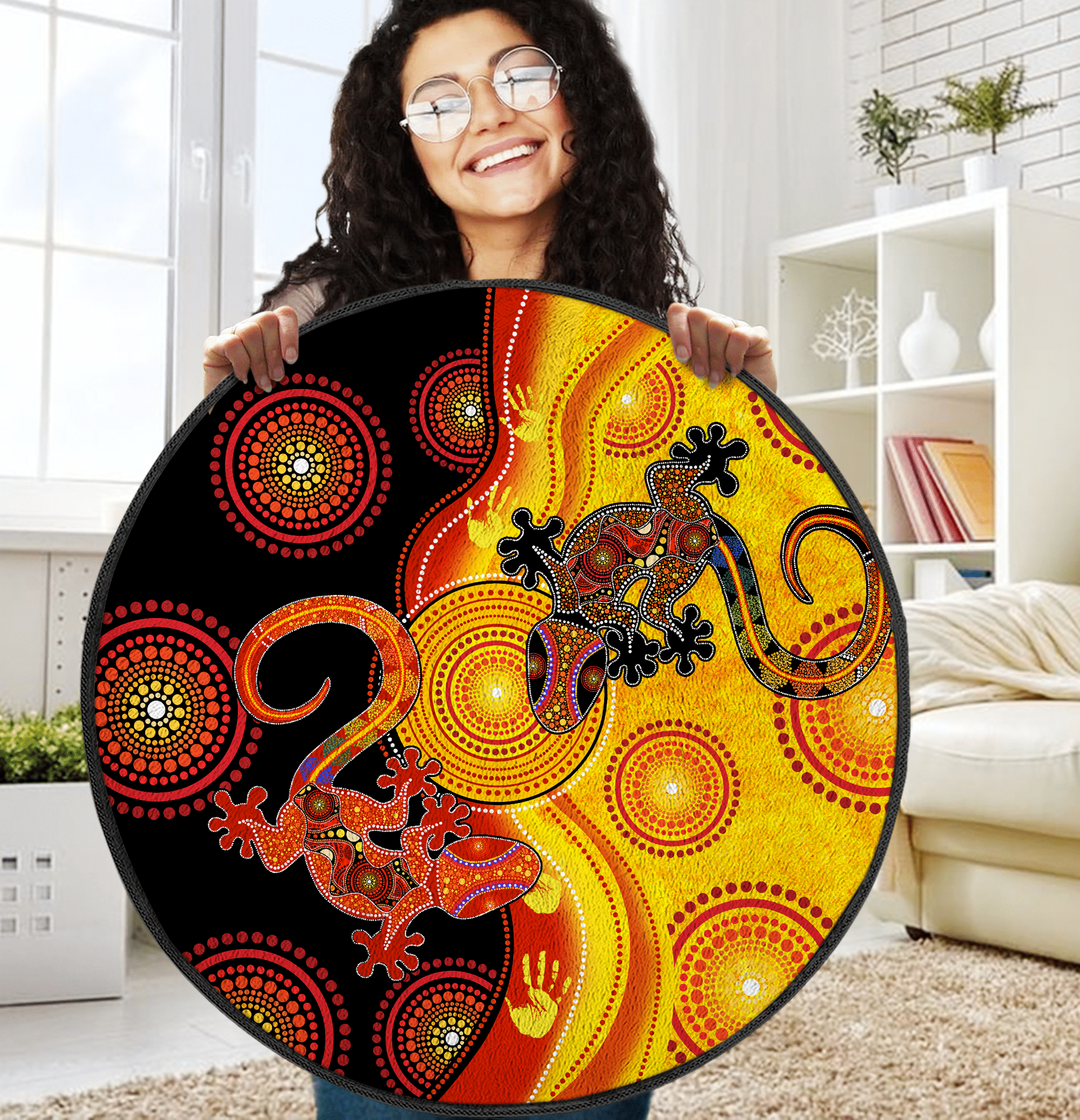 Aboriginal Lizards And The Sun Circle Rug Living Room Home Decor Living Room Home Decor