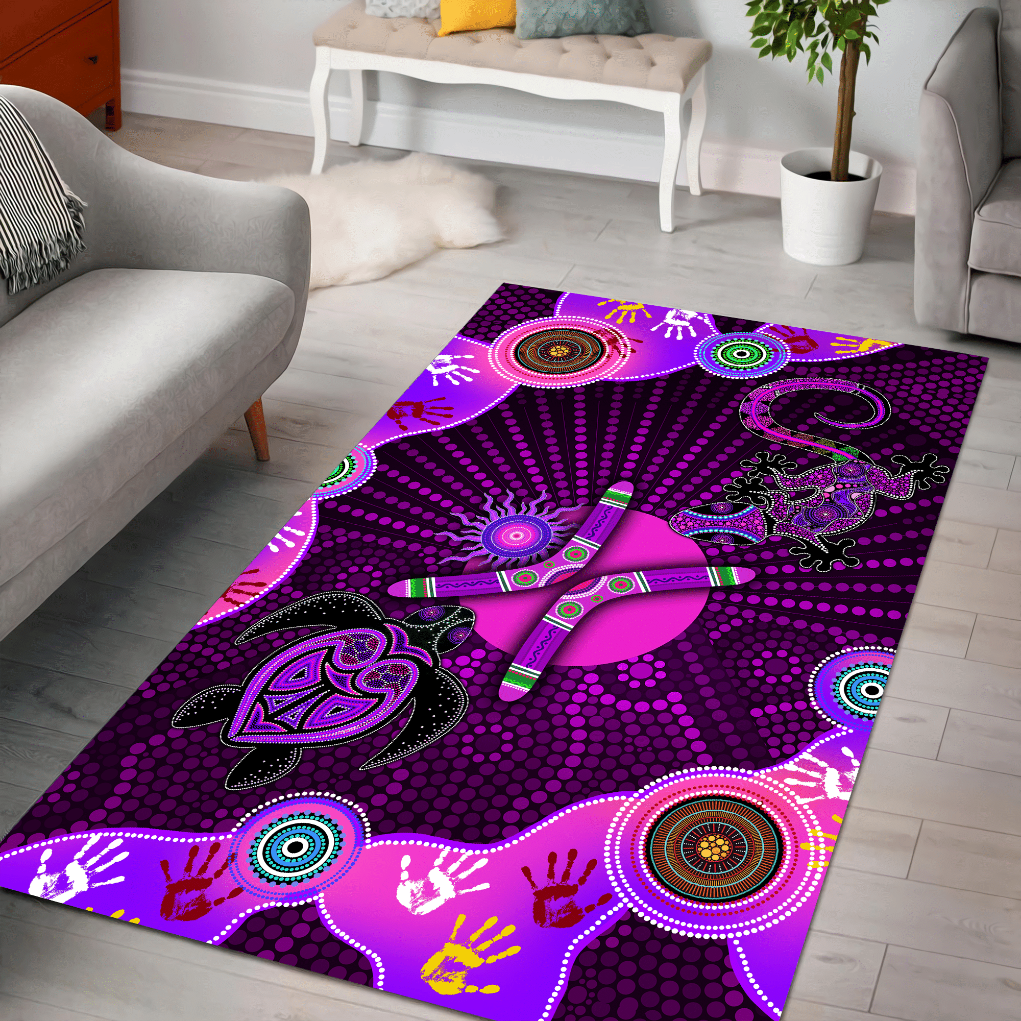 Aboriginal Naidoc Week 2021 Purple Turtle Lizard Sun Rug Living Room Home Decor