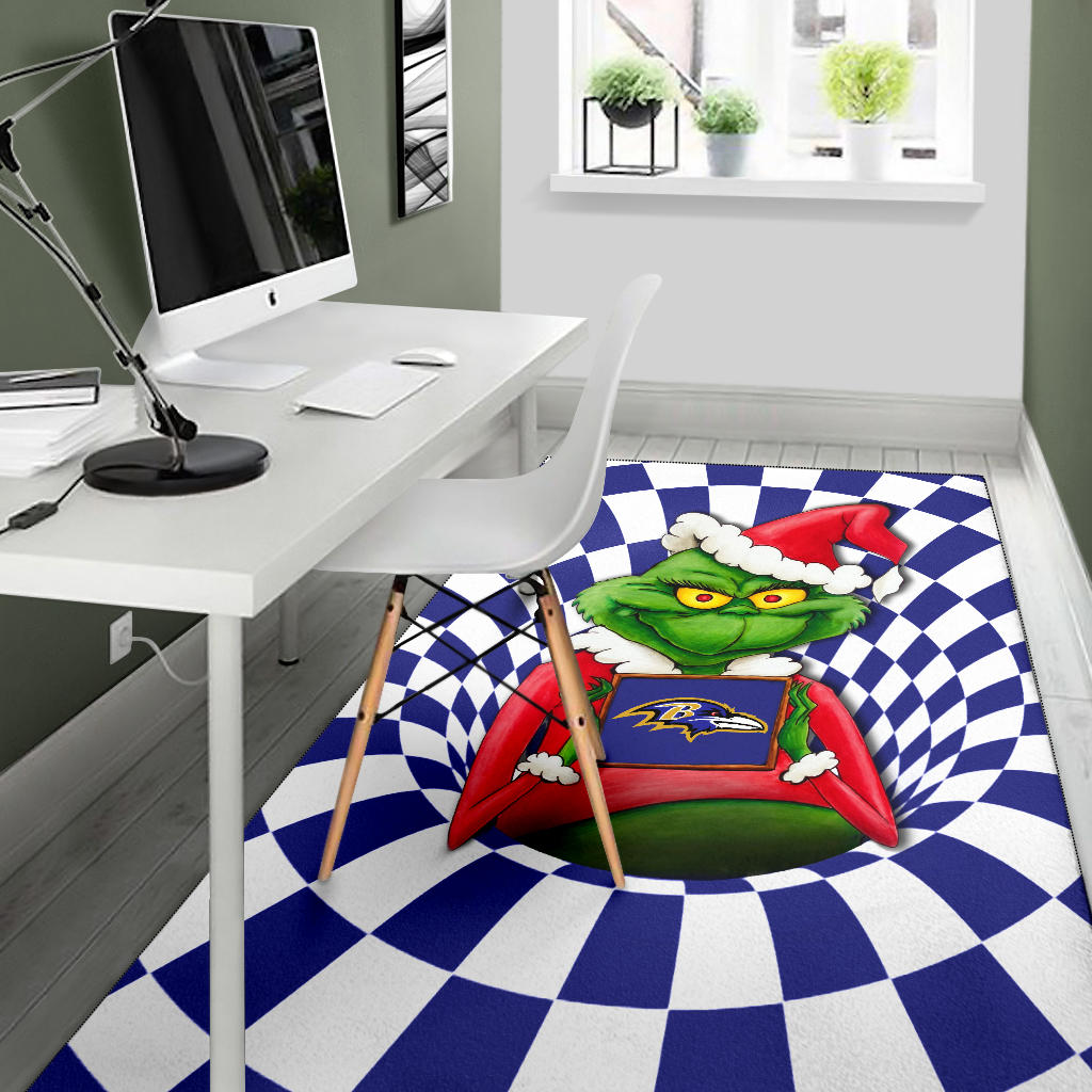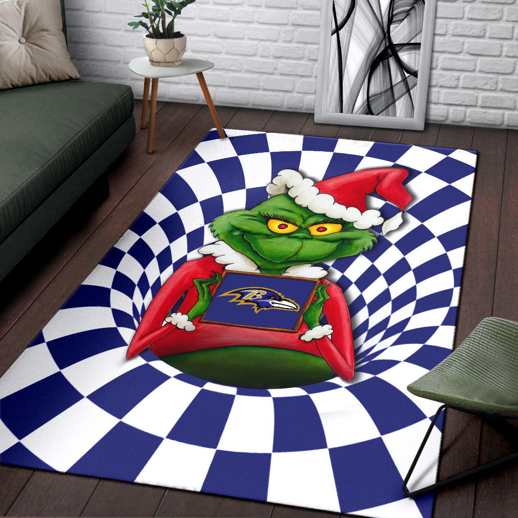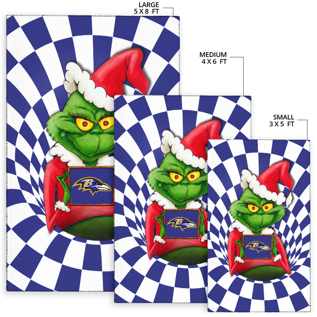 Style: Rug - American Football Team Area Rug | Grinch Wearing Santa Clothes Holding Baltimore Raven Rugs Home Decor H100509