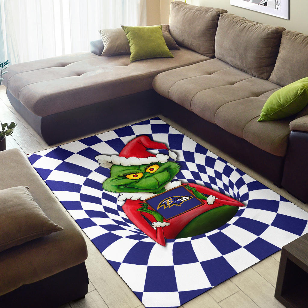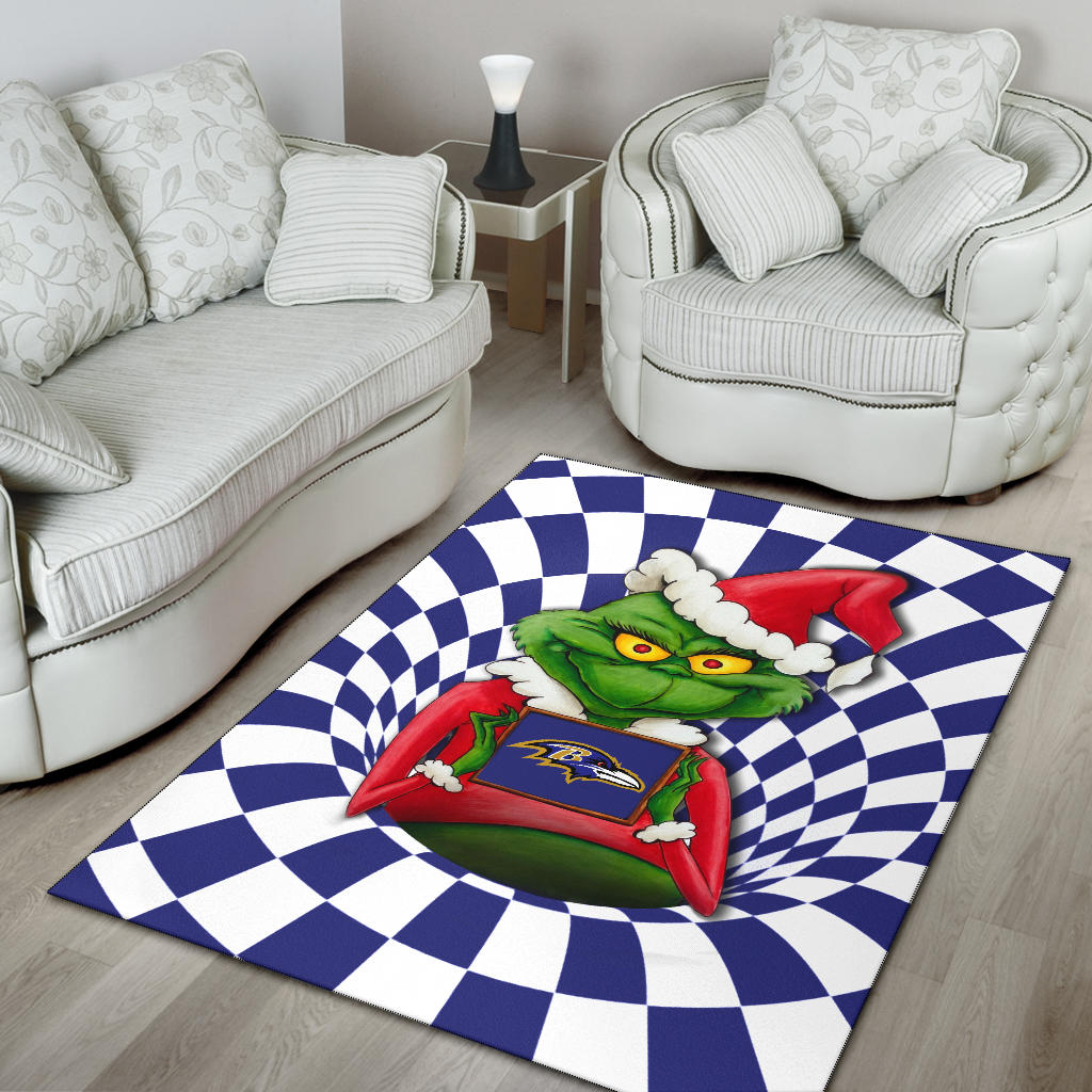 • Rug - American Football Team Area Rug | Grinch Wearing Santa Clothes Holding Baltimore Raven Rugs Home Decor H100509
