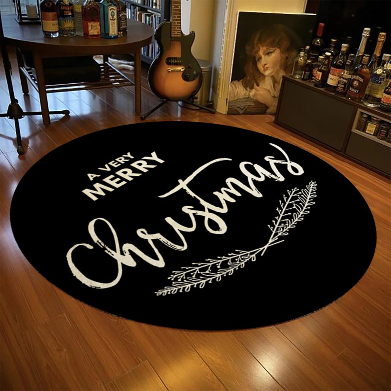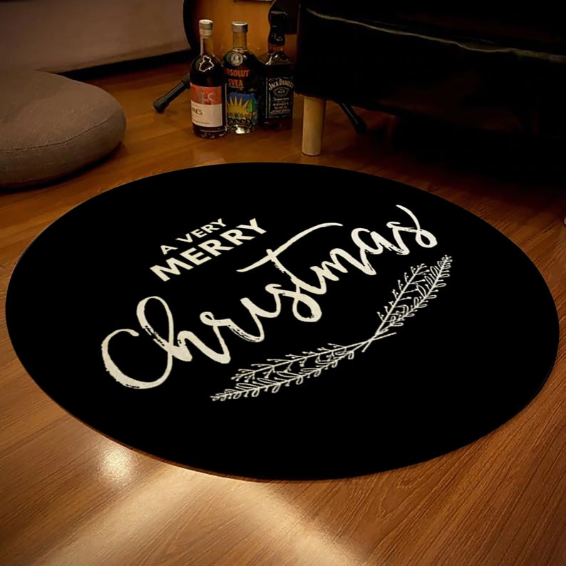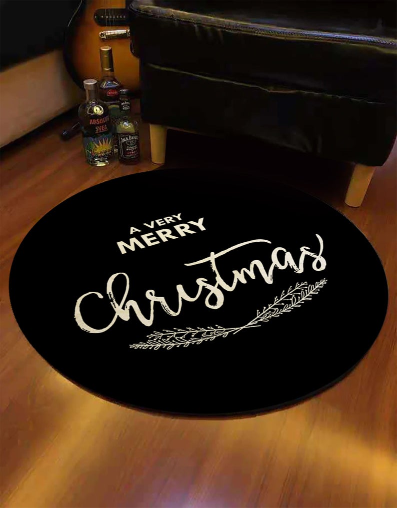 Black Merry Christmas Rug, Décor For Christmas Tree, Gift For Christmas, Christmas Home Décor, Holiday Décor, Black Round Rug, Custom Rug