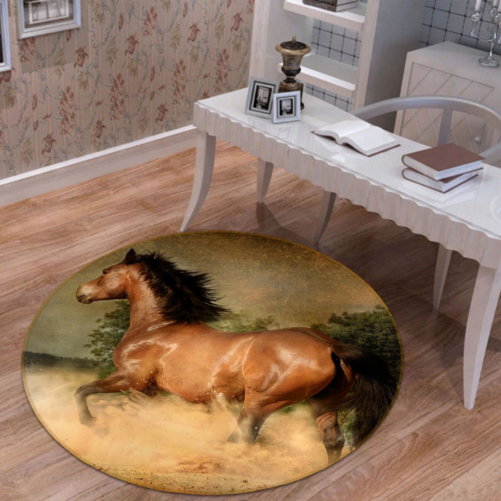 Brown Horse Running Dirty Ground Printed Round Rug – Round Carpet Home Decor
