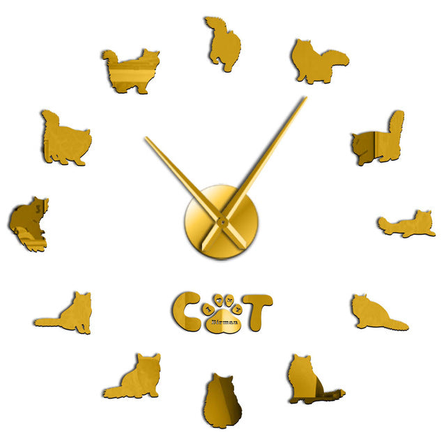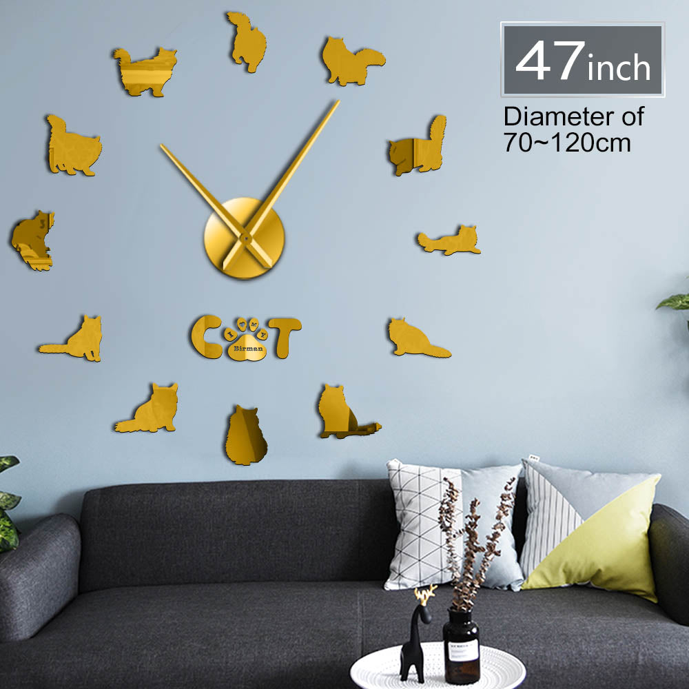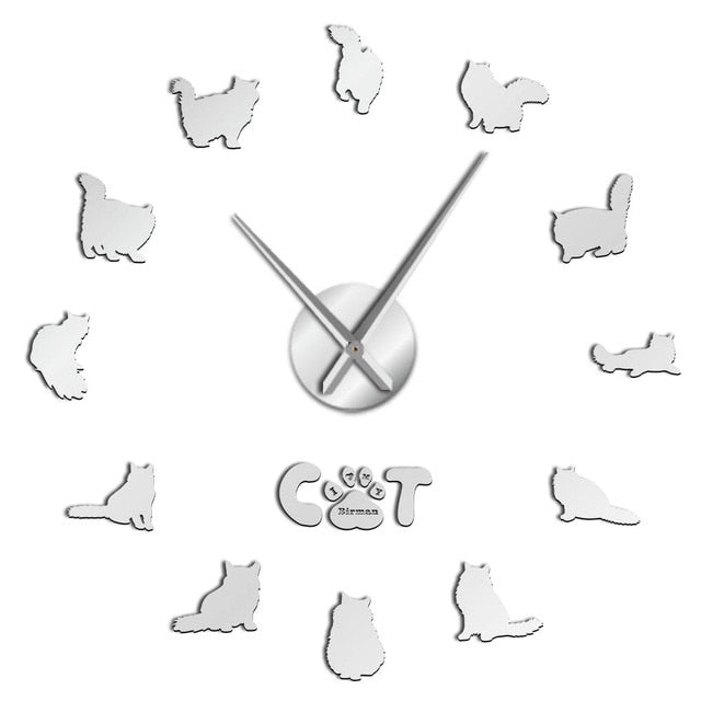 Cat Breed Living Room Wall Decor 3D Clock Watch Kitty Animals Design Home Decor Wall Clock A54