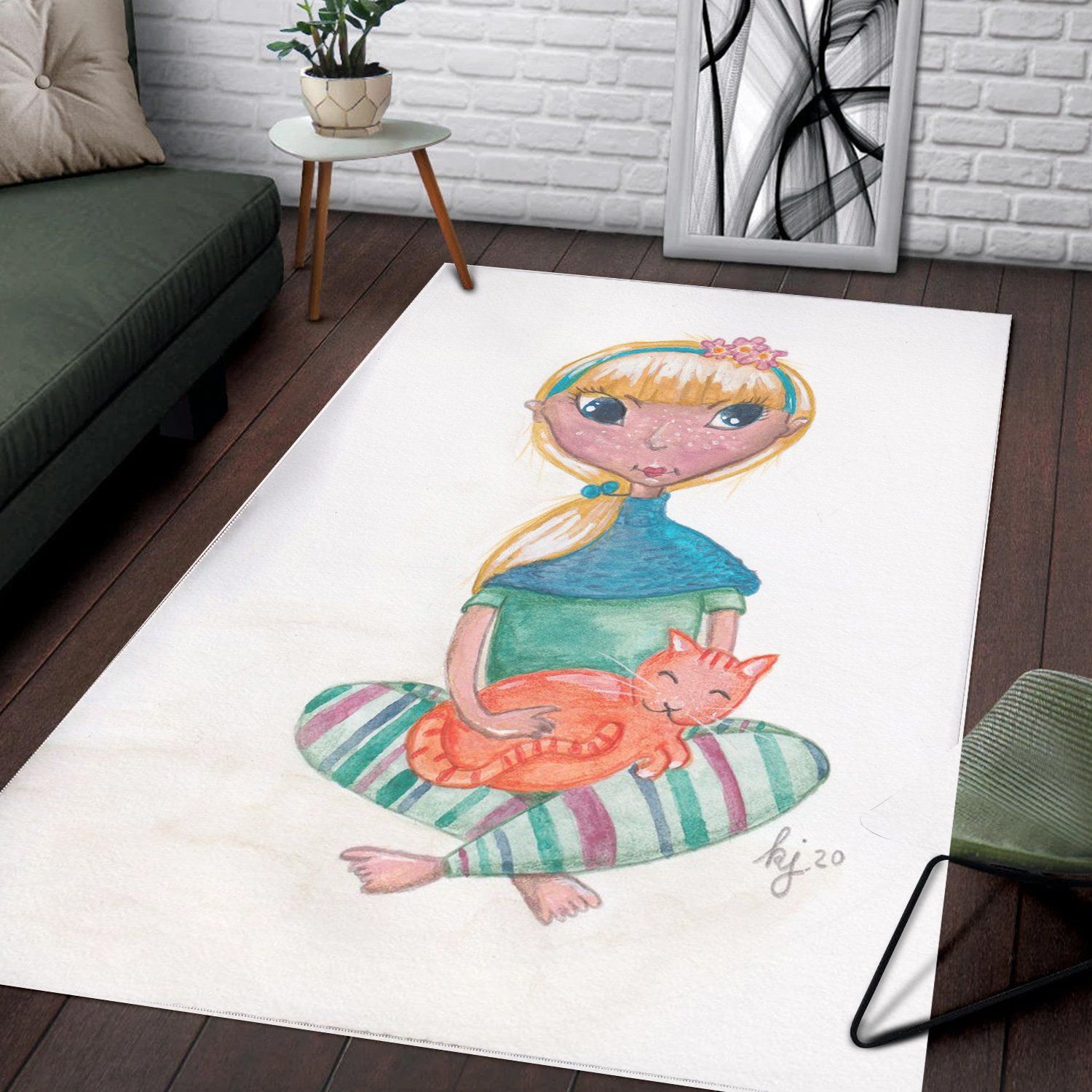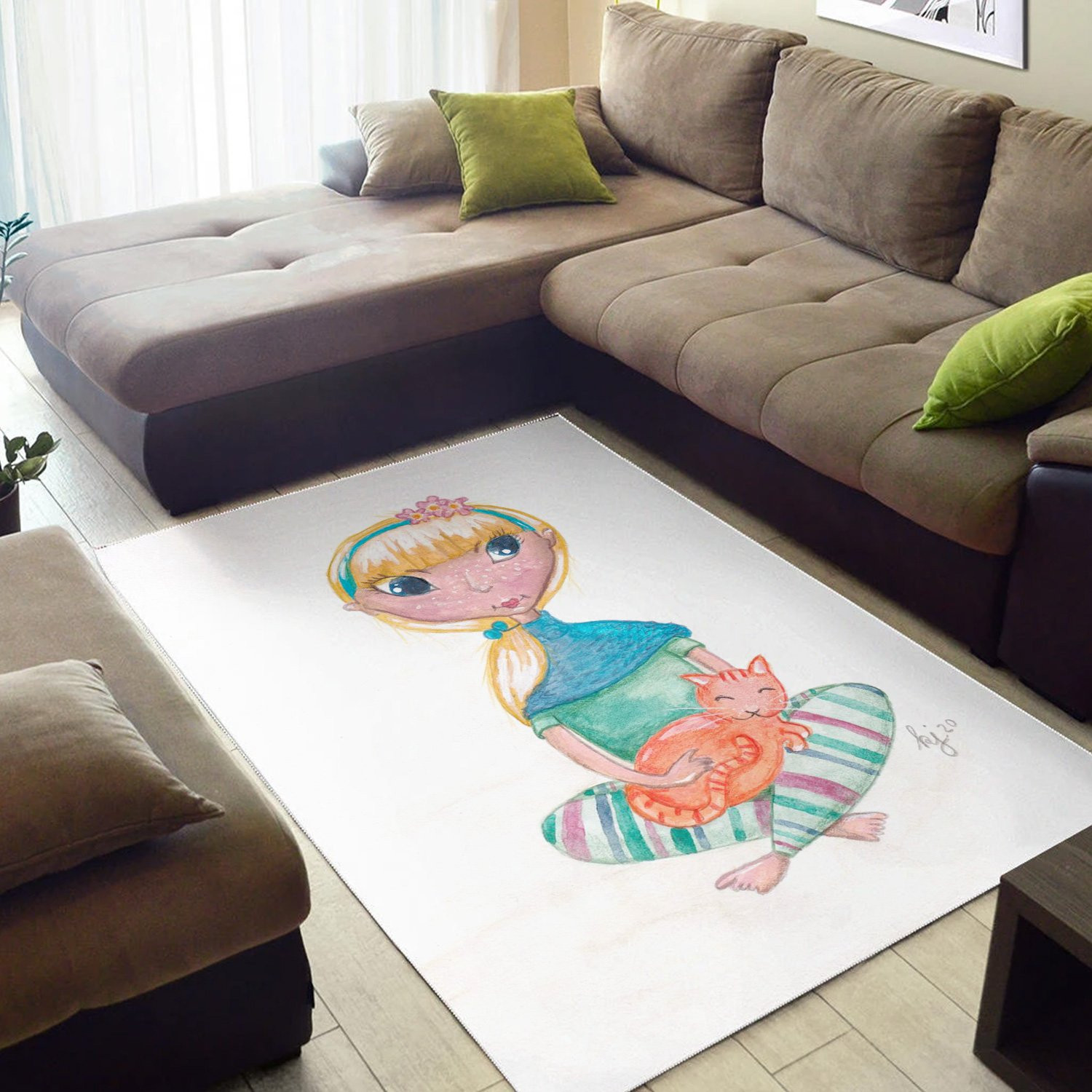 Cat Girl Area Rug Bedroom Home Decor Floor Decor