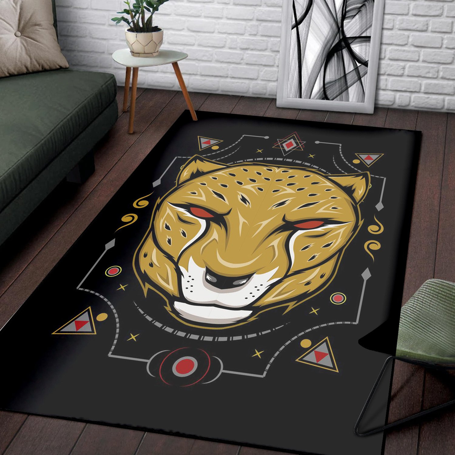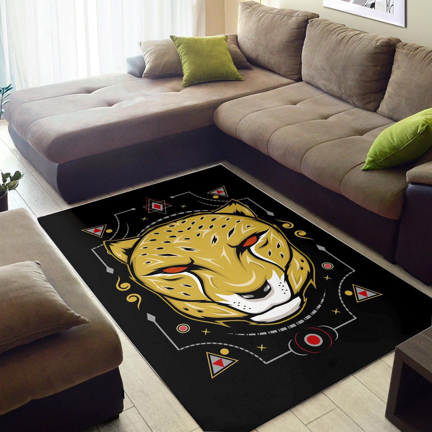 Cheetah Head Illustration Area Rug Living Room Rug Home Decor Floor Decor