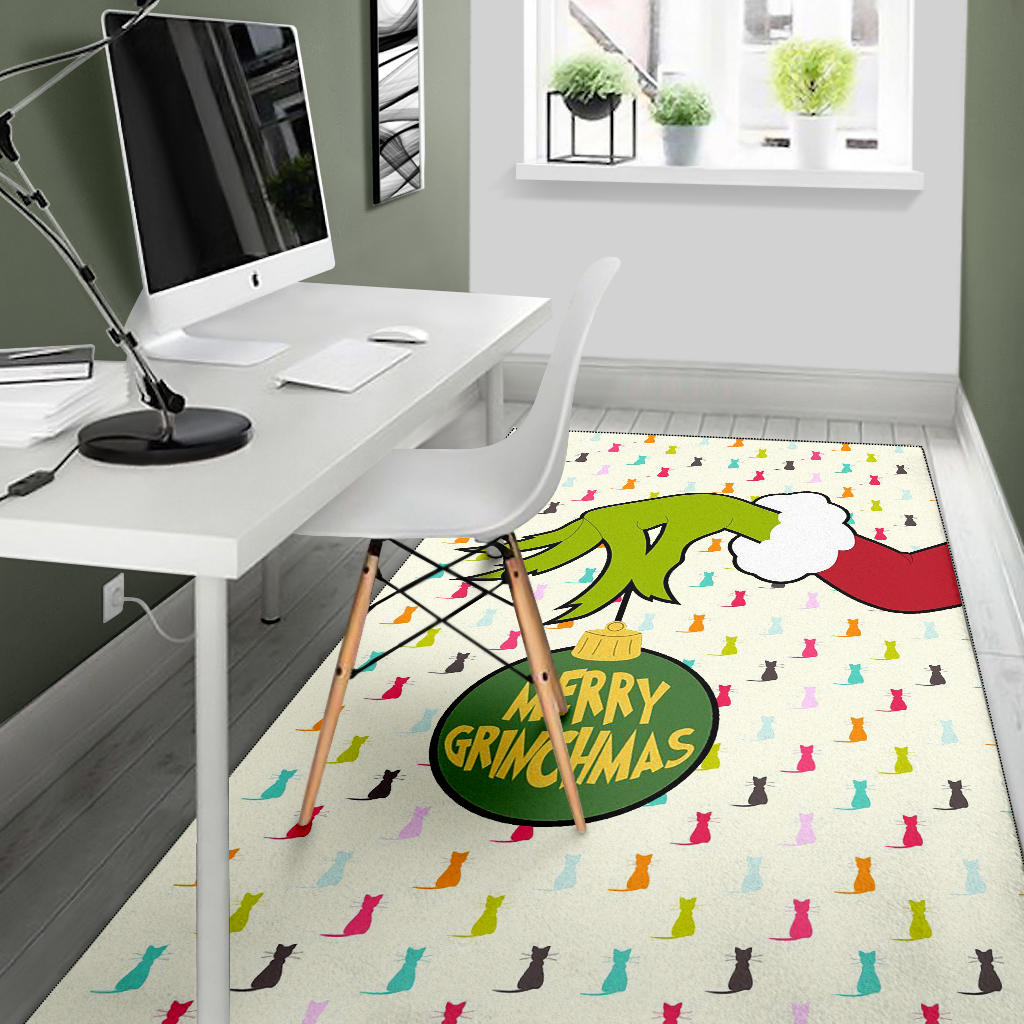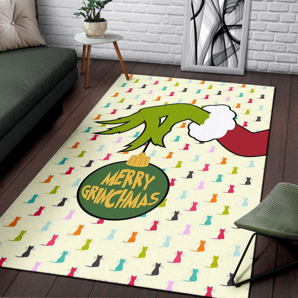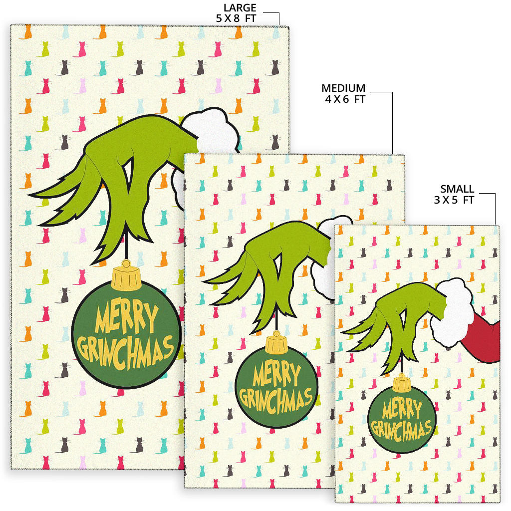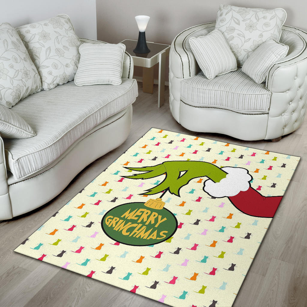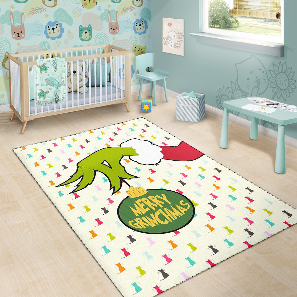 Christmas Area Rug | Merry Grinchmas Grinch Hand Holding Xmas Ball Rugs Home Decor