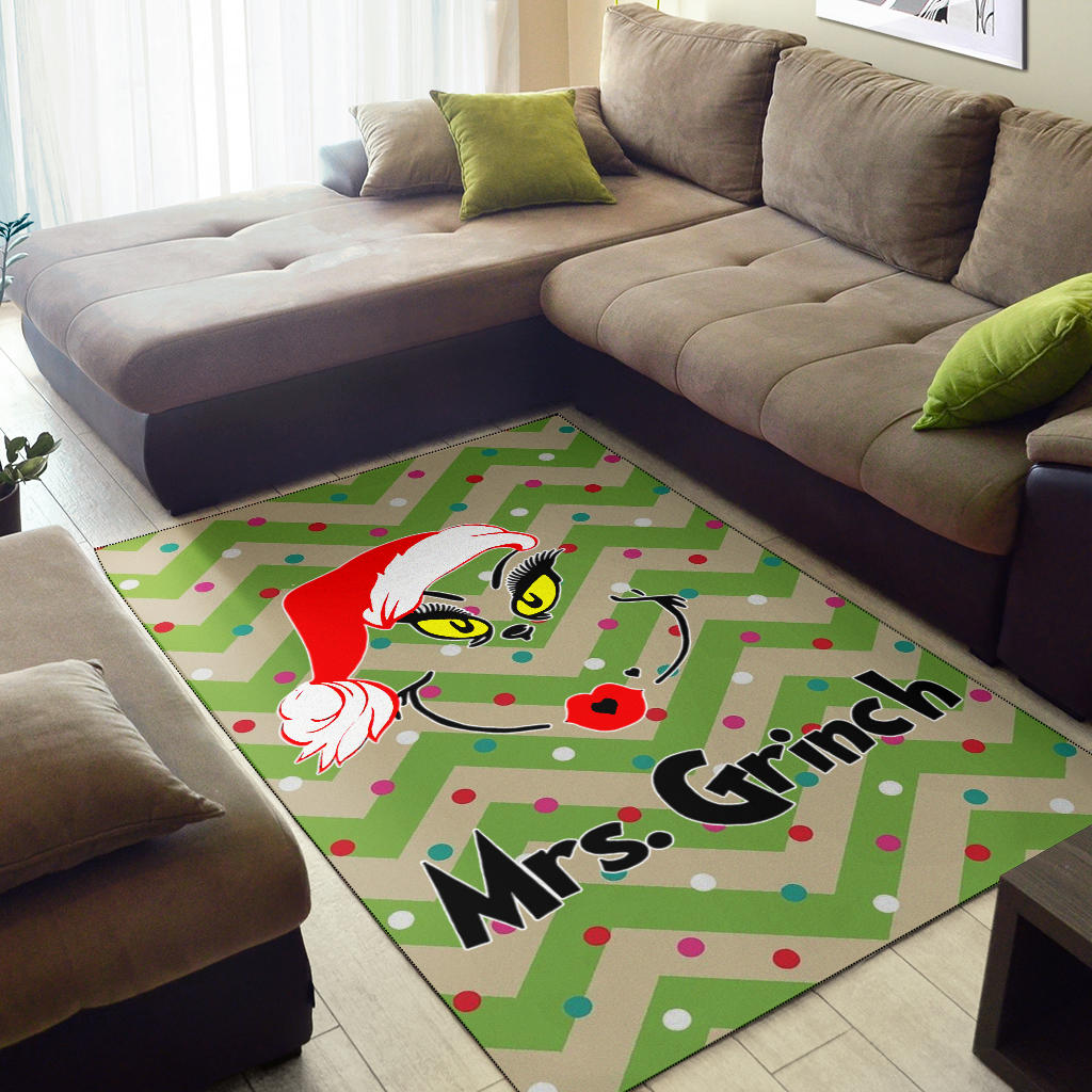 Style: Rug - Christmas Area Rug | Sweet Mrs. Grinch Minimal Face Xmas Hat Rugs Home Decor NA100805