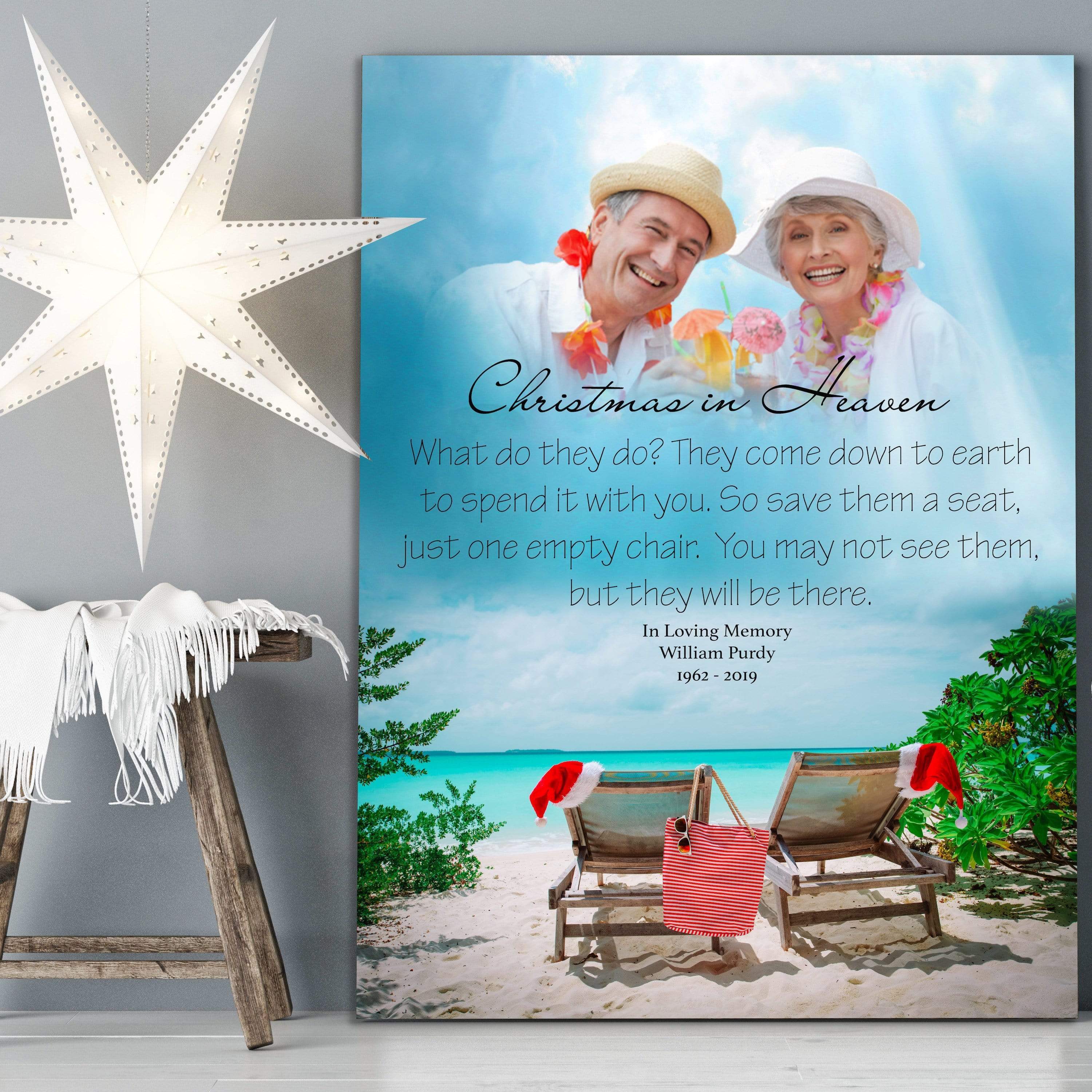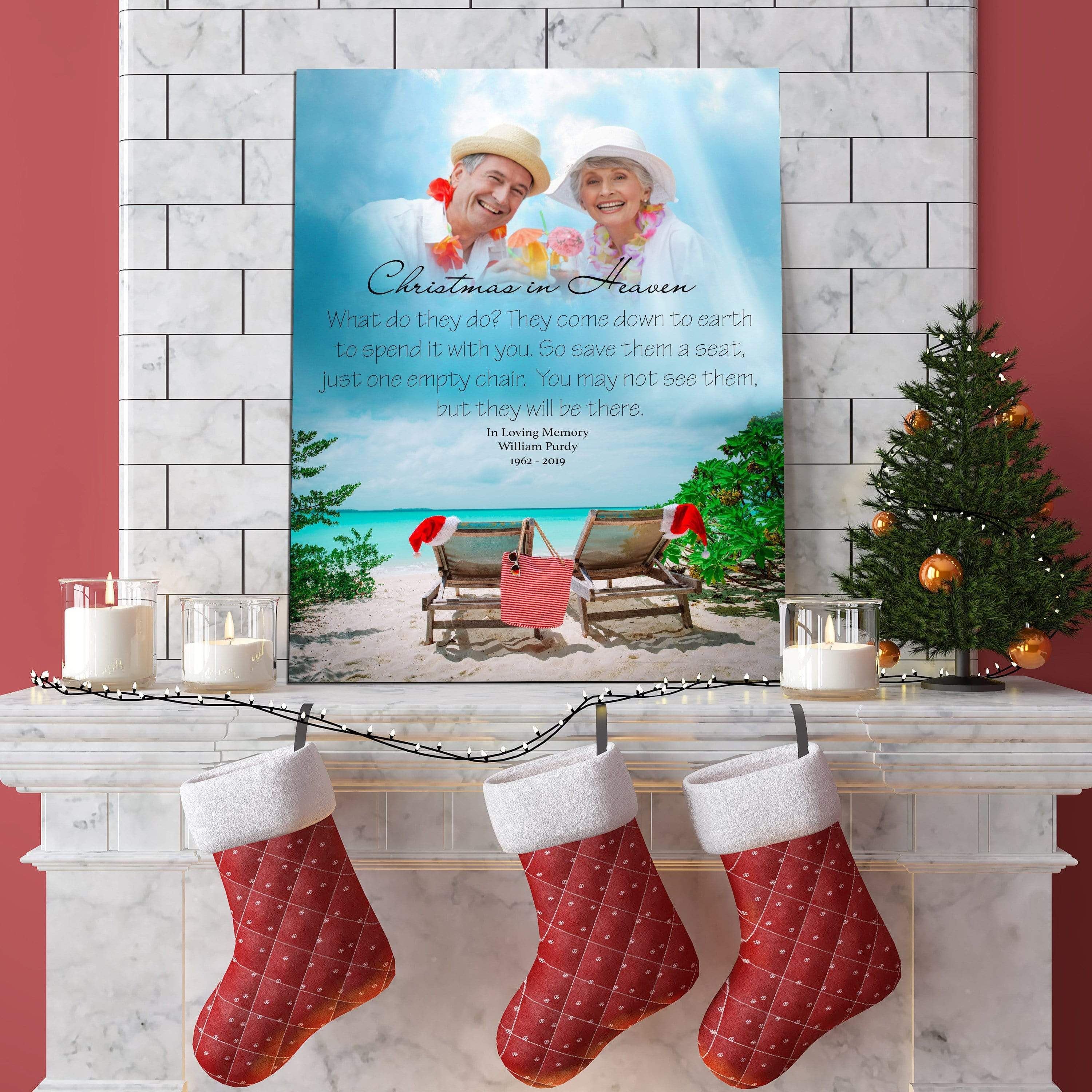 Christmas In Heaven Christmas In Paradise Background, Personalized Photo Memorial Poster Canvas, Gif For Family Gift Warm Home Decor Wall Art Visual Art