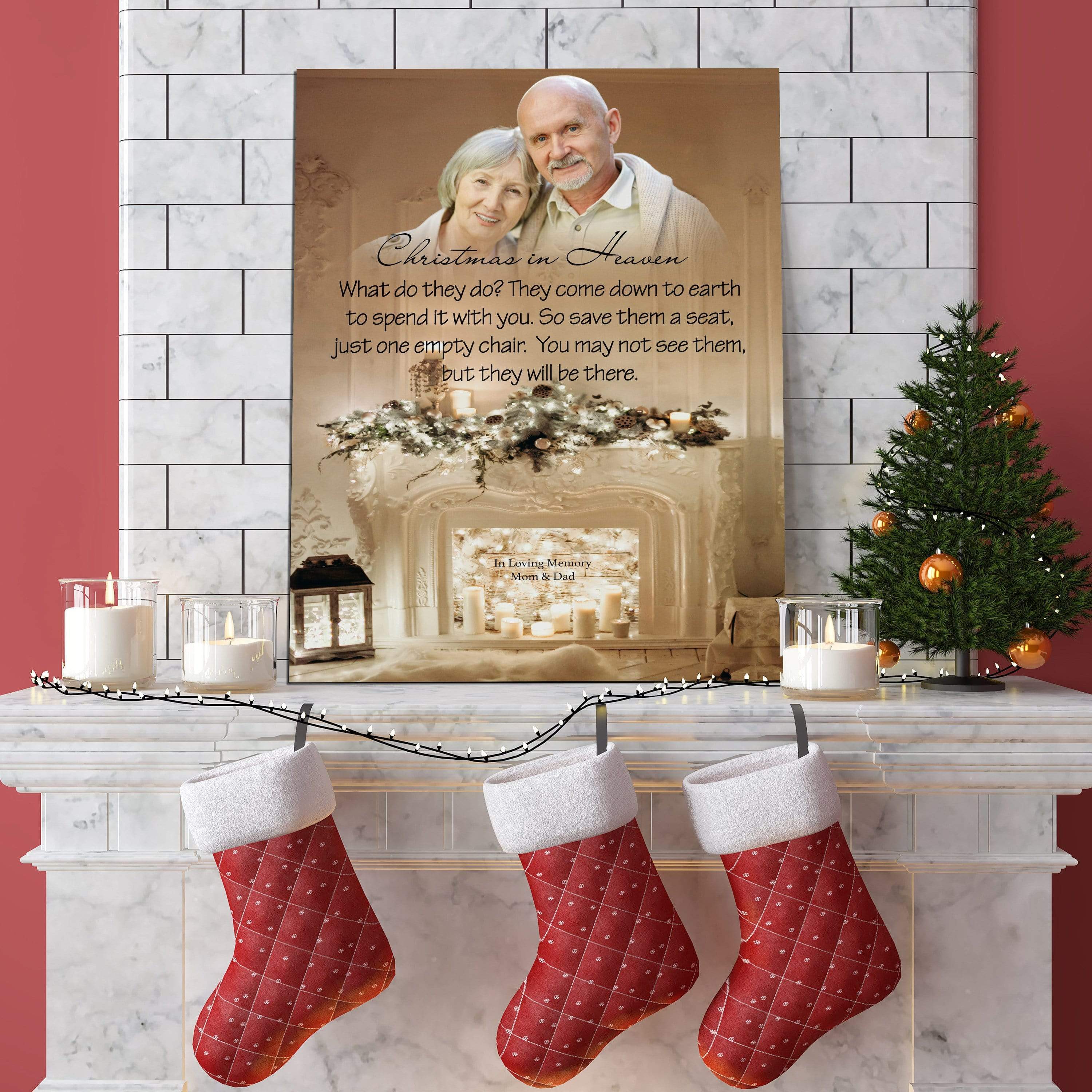 Christmas In Heaven Christmas Memories, Personalized Photo Memorial Poster Canvas, Gif For Family Gift Warm Home Decor Wall Art Visual Art
