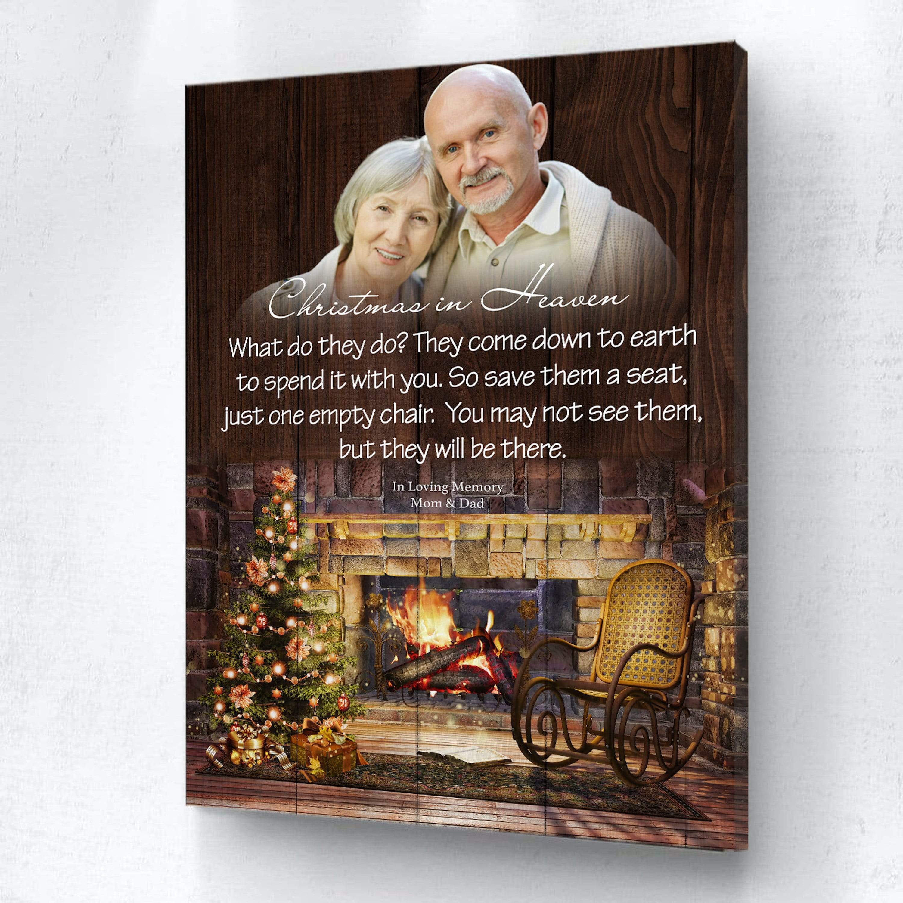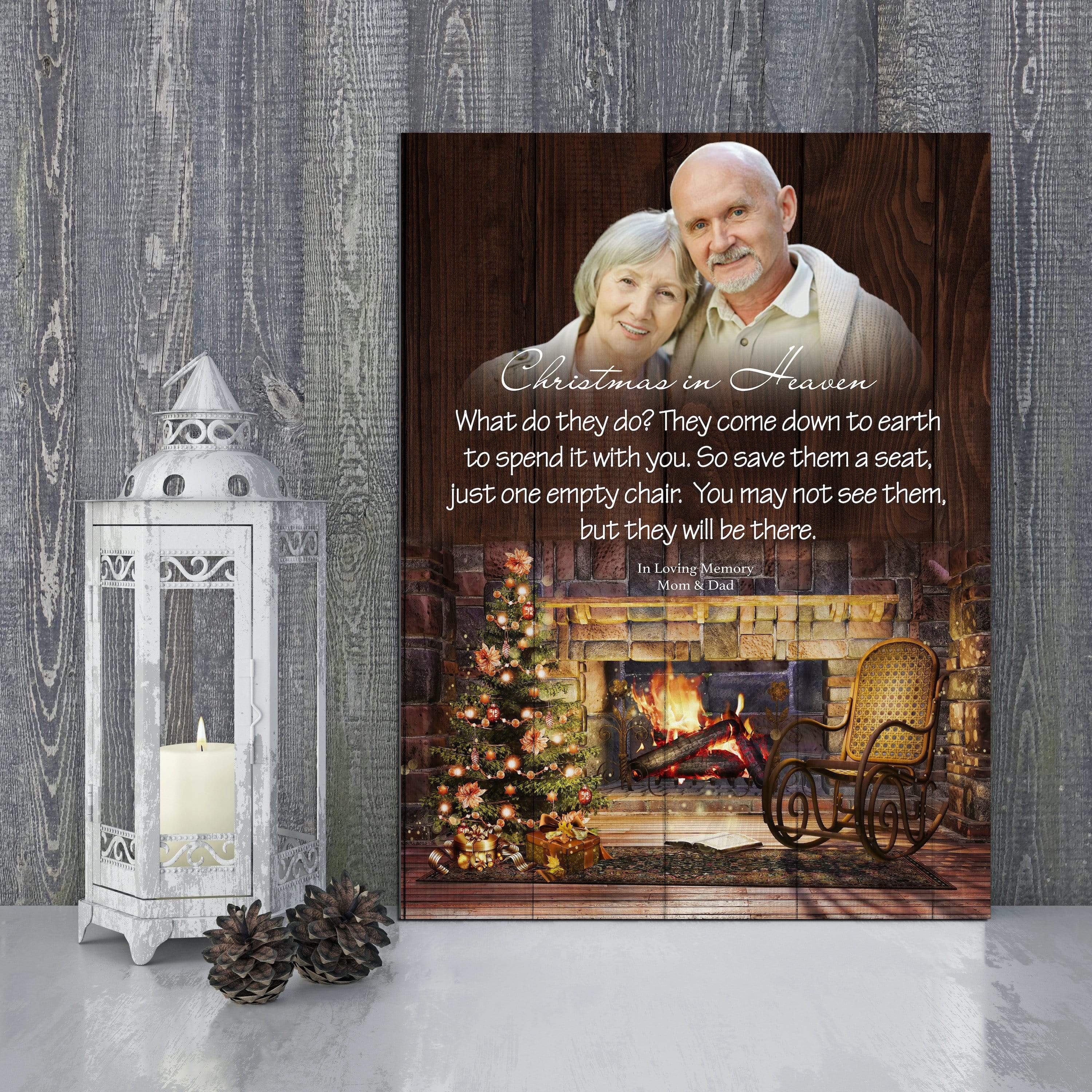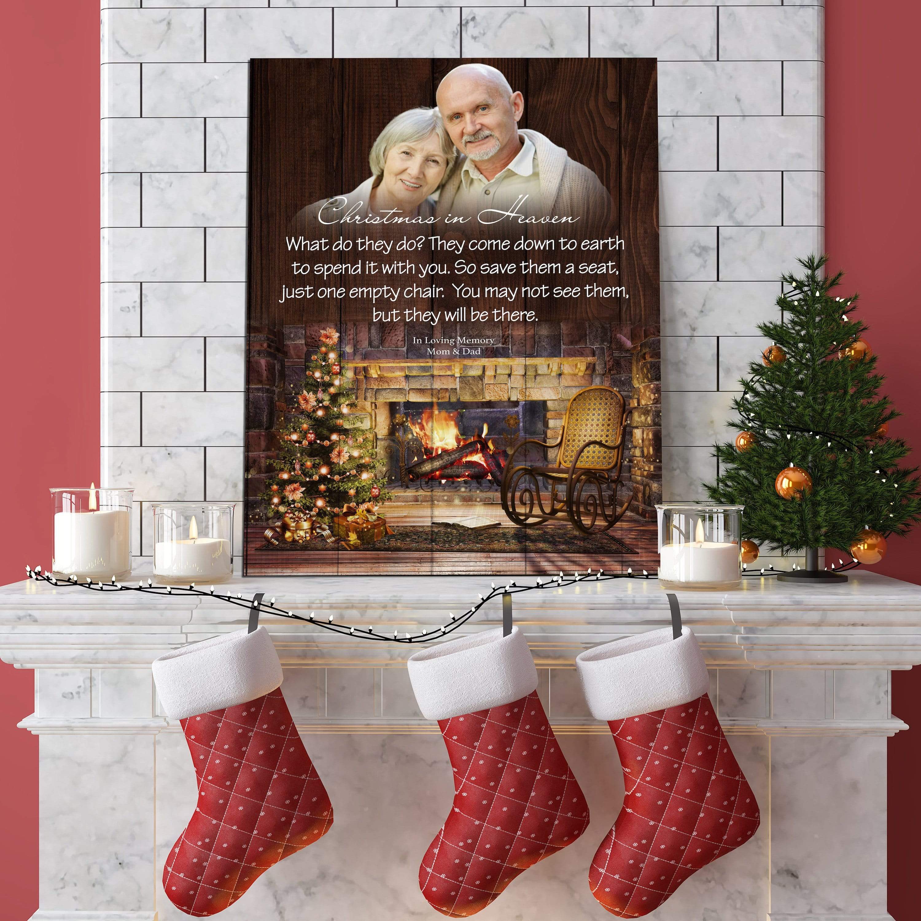 Christmas In Heaven Country Christmas Background, Personalized Photo Memorial Poster Canvas, Gift For Family Gift for Remembrance Home Decor Wall Art Visual Art