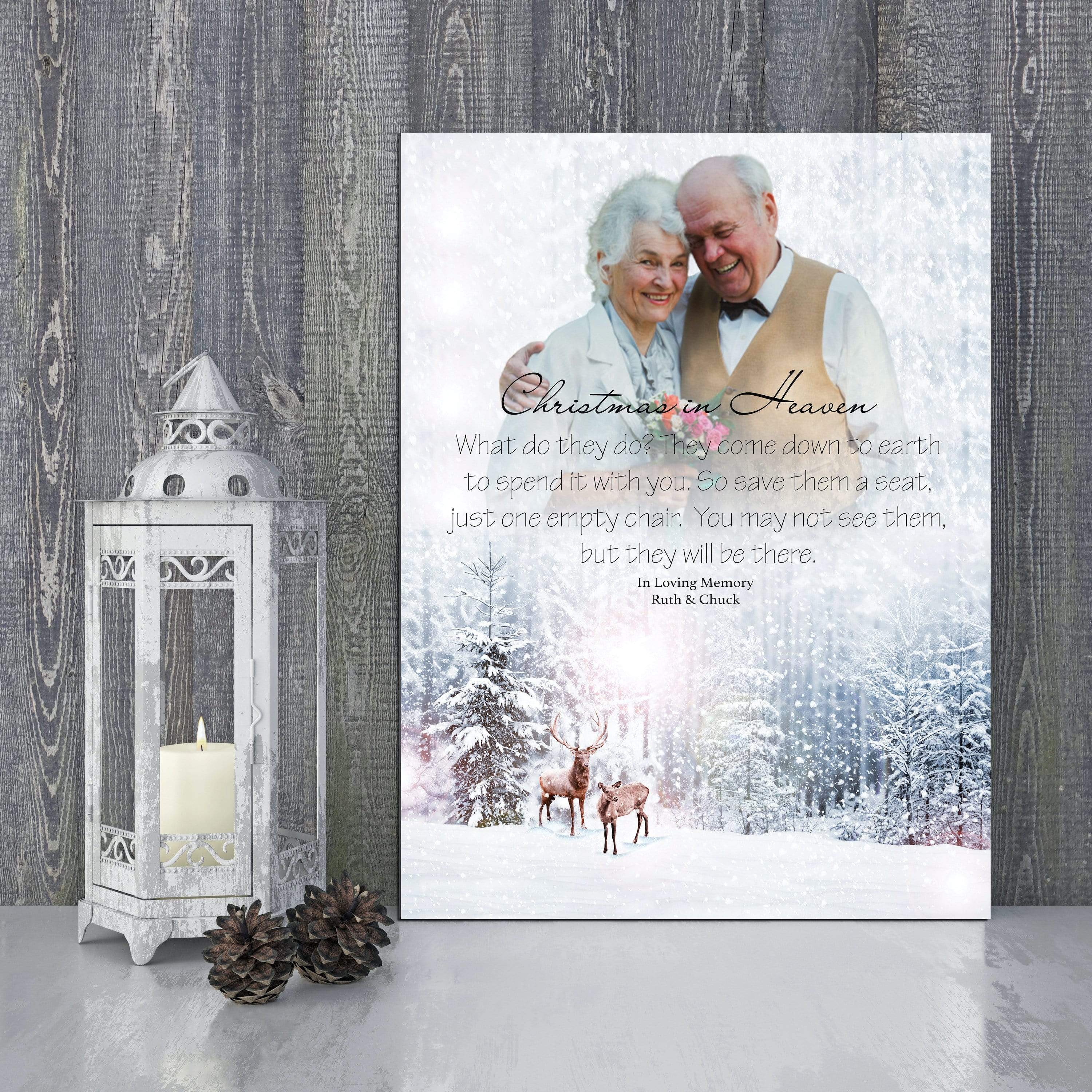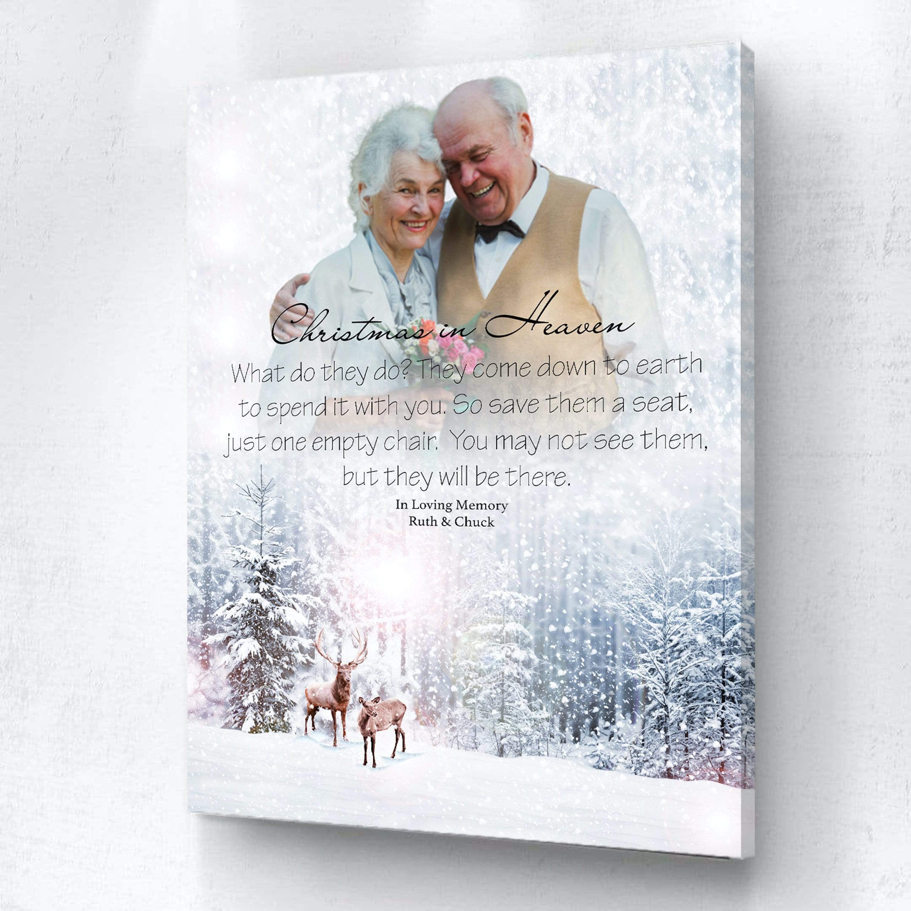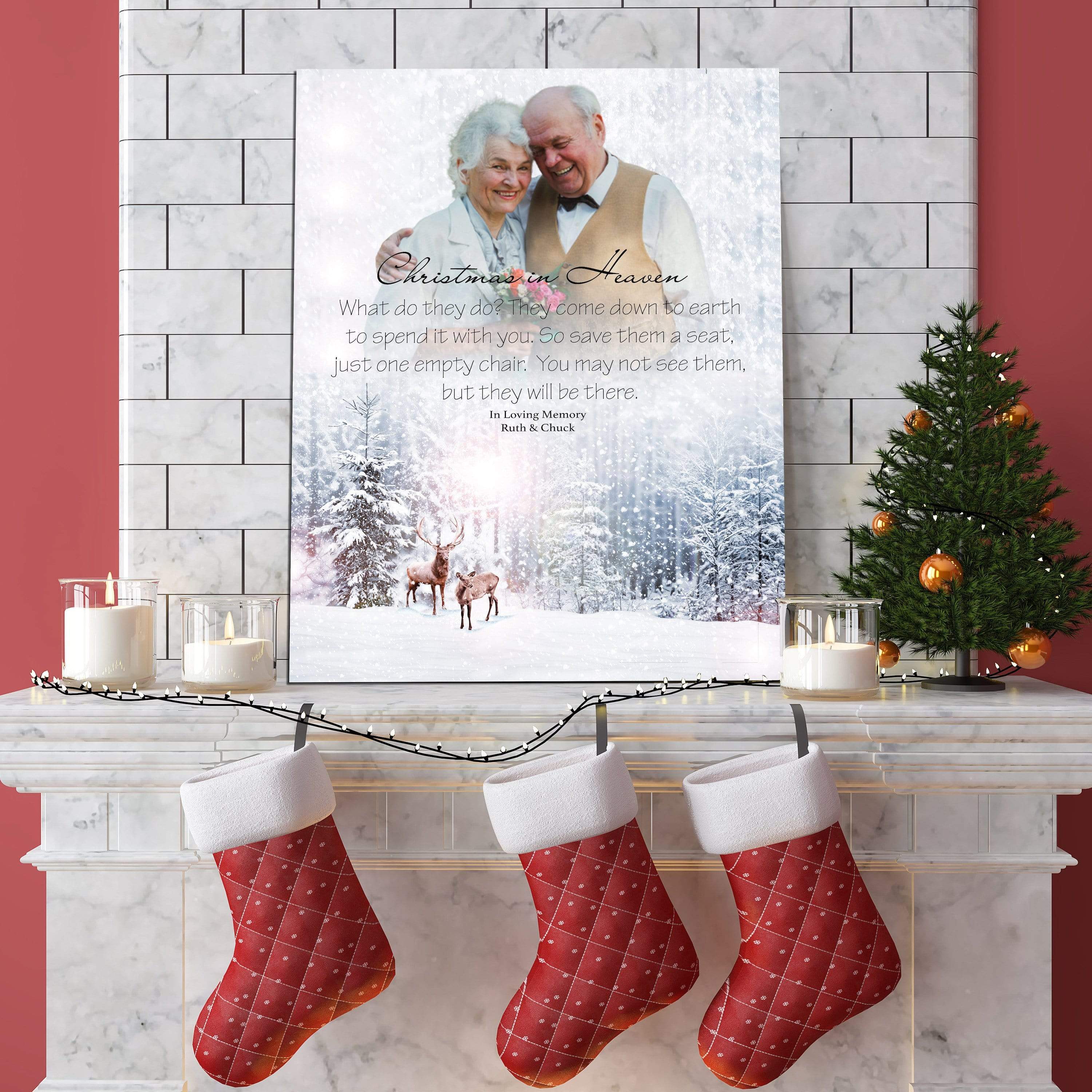 Christmas In Heaven White Christmas Background, Personalized Photo Memorial Poster Canvas, Gift For Family Gift for Remembrance Home Decor Wall Art Visual Art