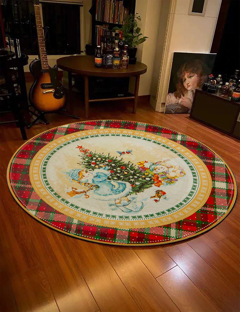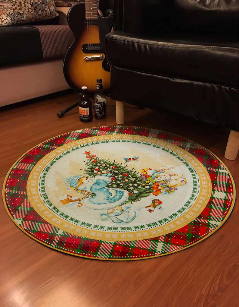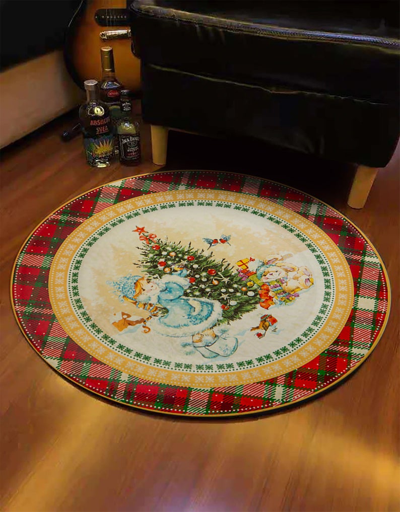 Christmas Rug, Holiday Rug, Round Christmas Carpet, Decorative Rug, Christmas Gift, Non-Slip Plushy Rug, Christmas Home Décor, Holiday Décor