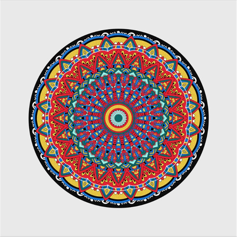 Color Mandala Flower Pattern Round Carpet Polyester Home Decor Rugs For Children Room Anti-Wrinkle Mat