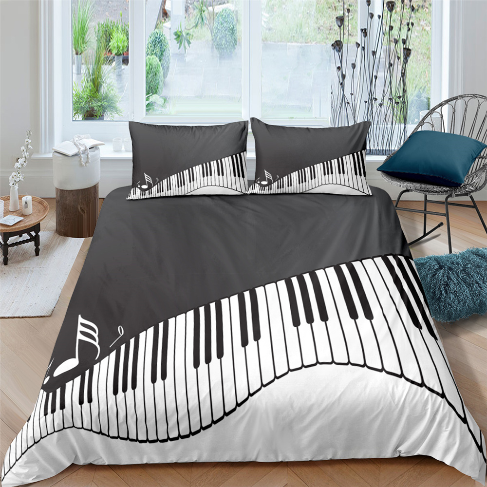 Colorful Piano Keys 3D Bedding Set Music Note Duvet Cover Set Queen King Size Luxury White Black Home Decor Microfiber