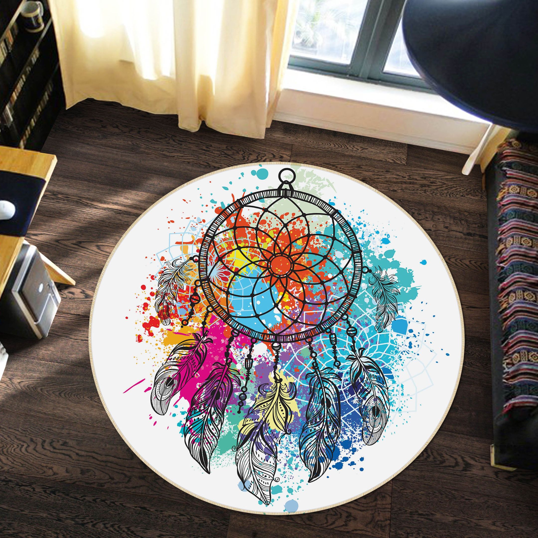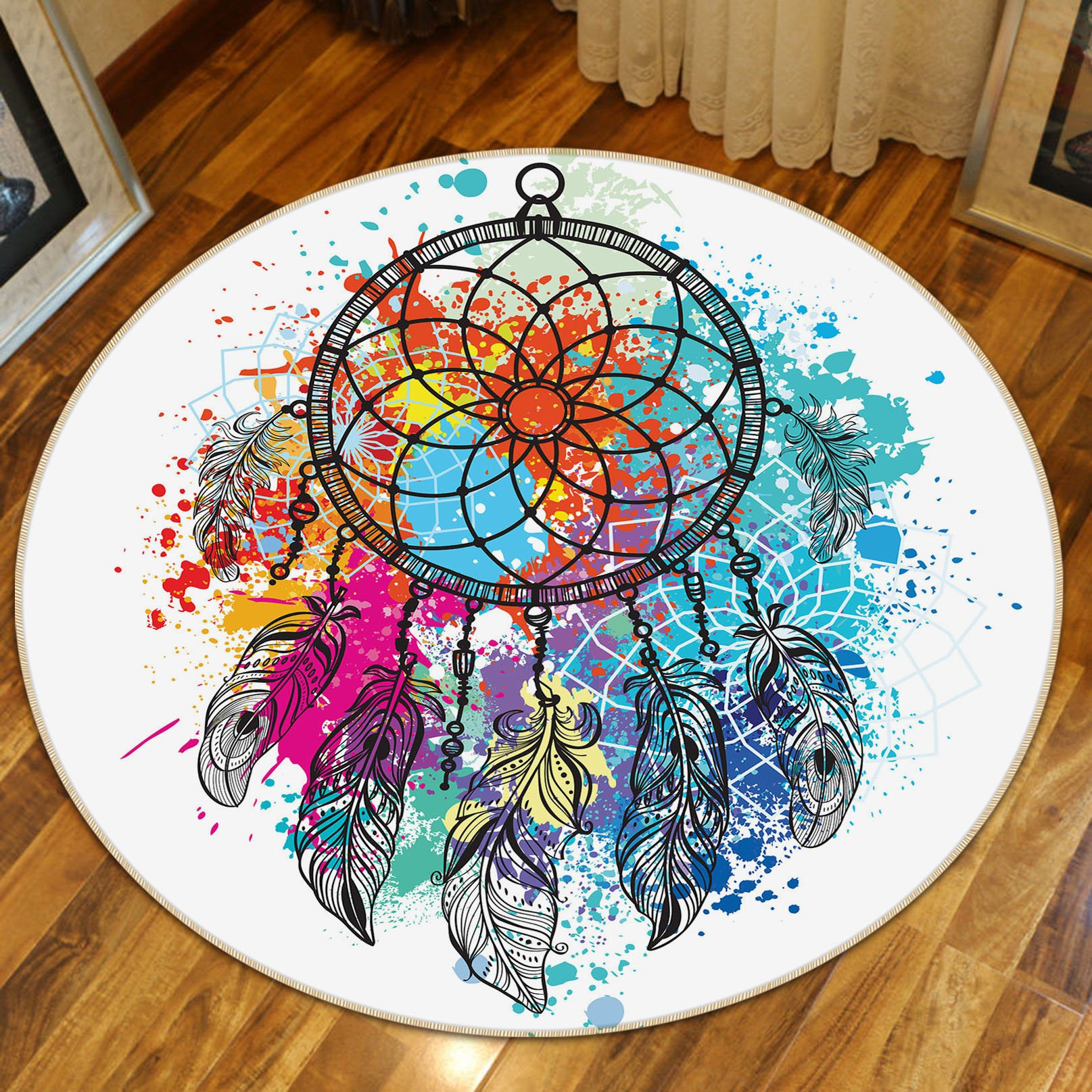 Colorful Splashing Dreamcatcher Round Rug – Round Carpet Home Decor