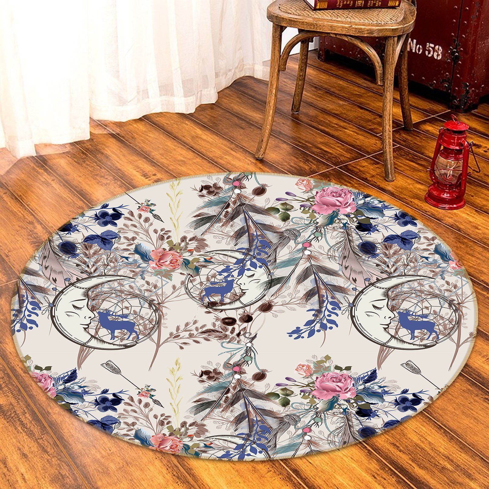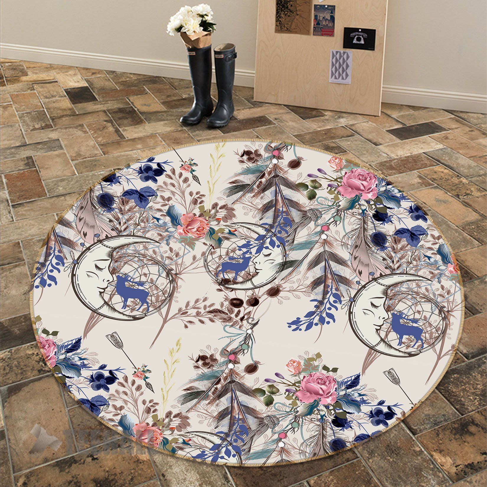 Crescent Moon With Flowers Round Rug – Round Carpet Home Decor