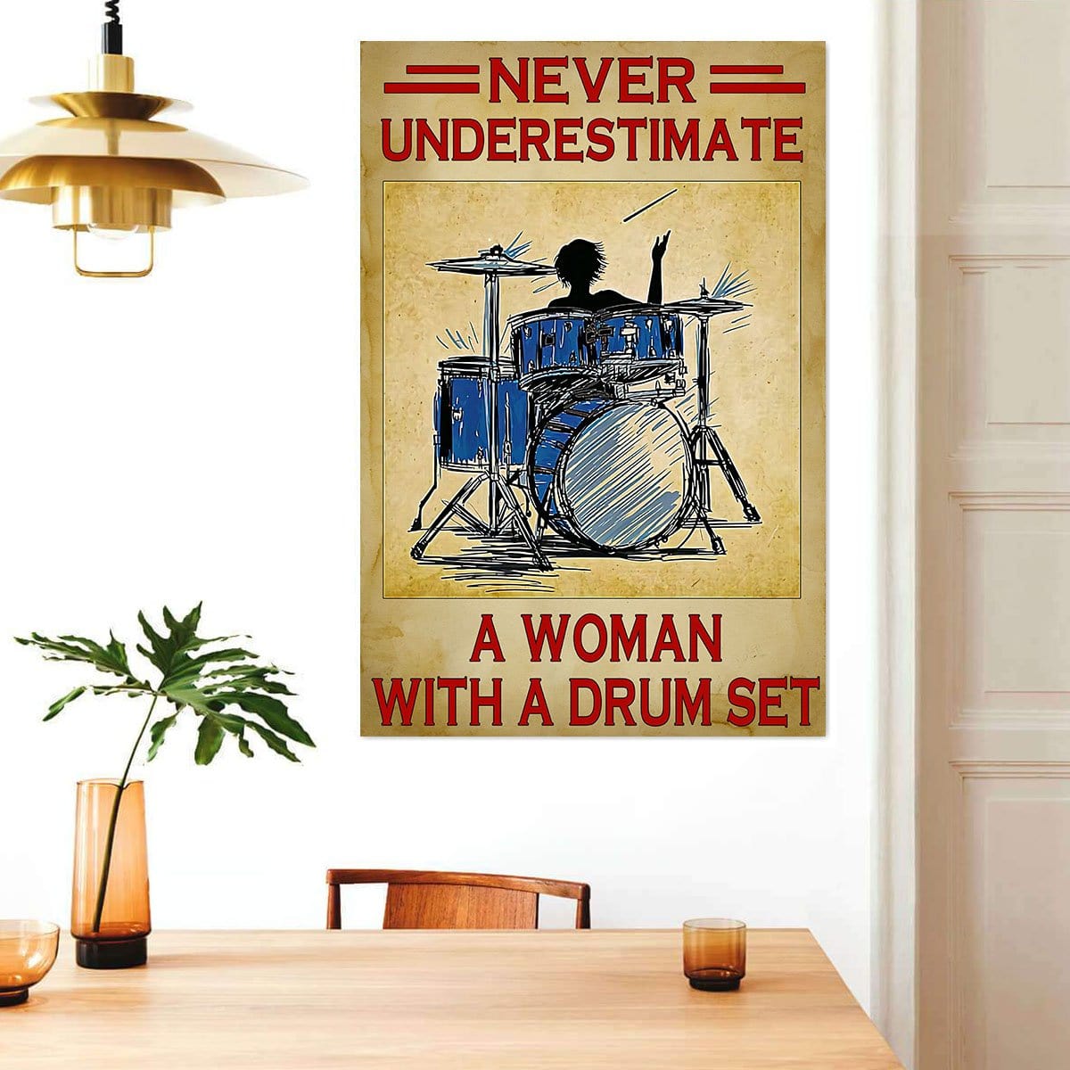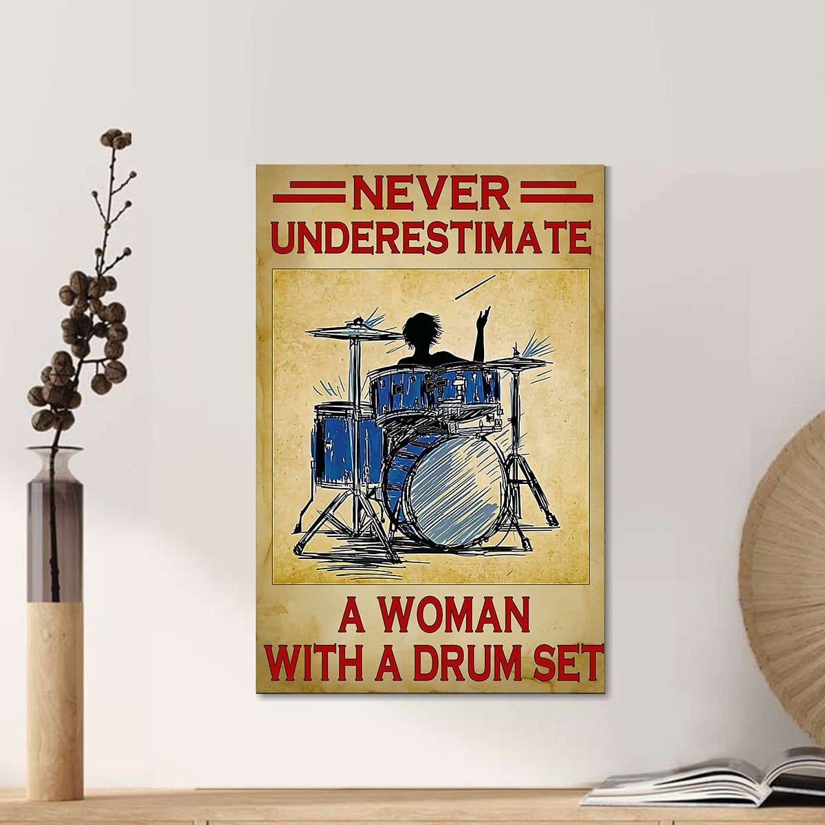 Custom Canvas Art Never Understimate A Woman With A Drum Set Wall Art Home Decor