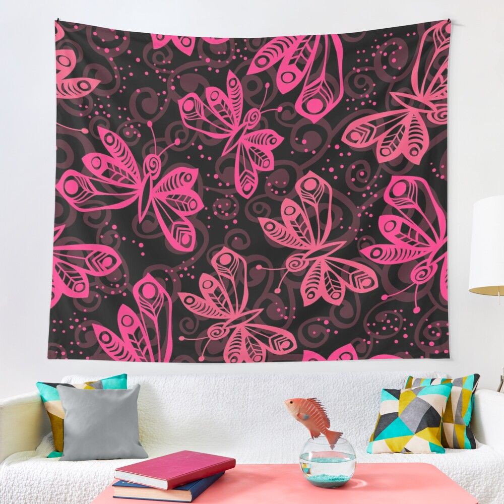 Cute Pink Black Butterfly Wall Tapestry For Bedroom Teen Girl Living Room Dorm Home Decor