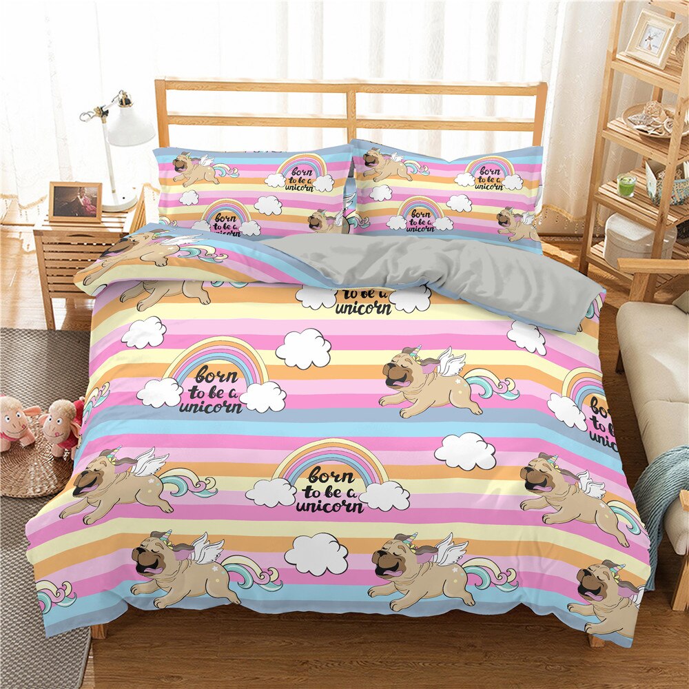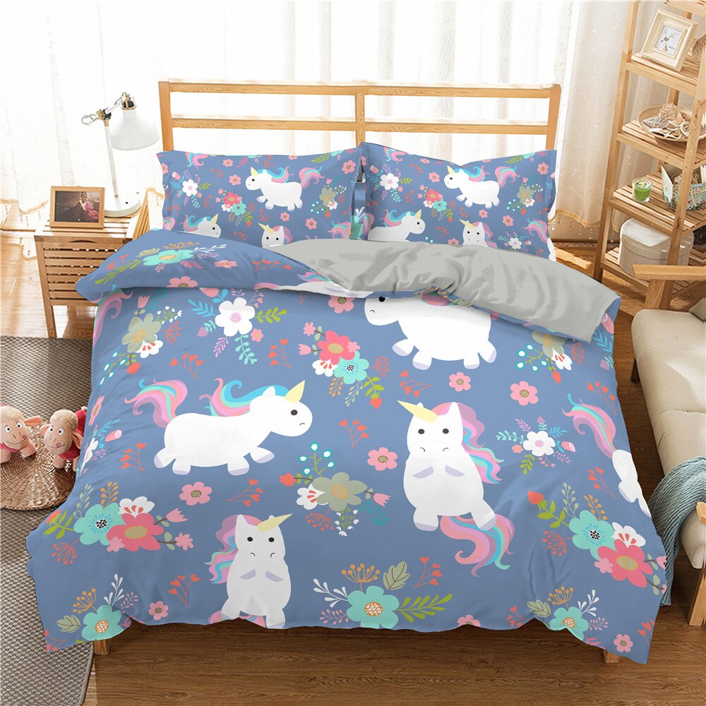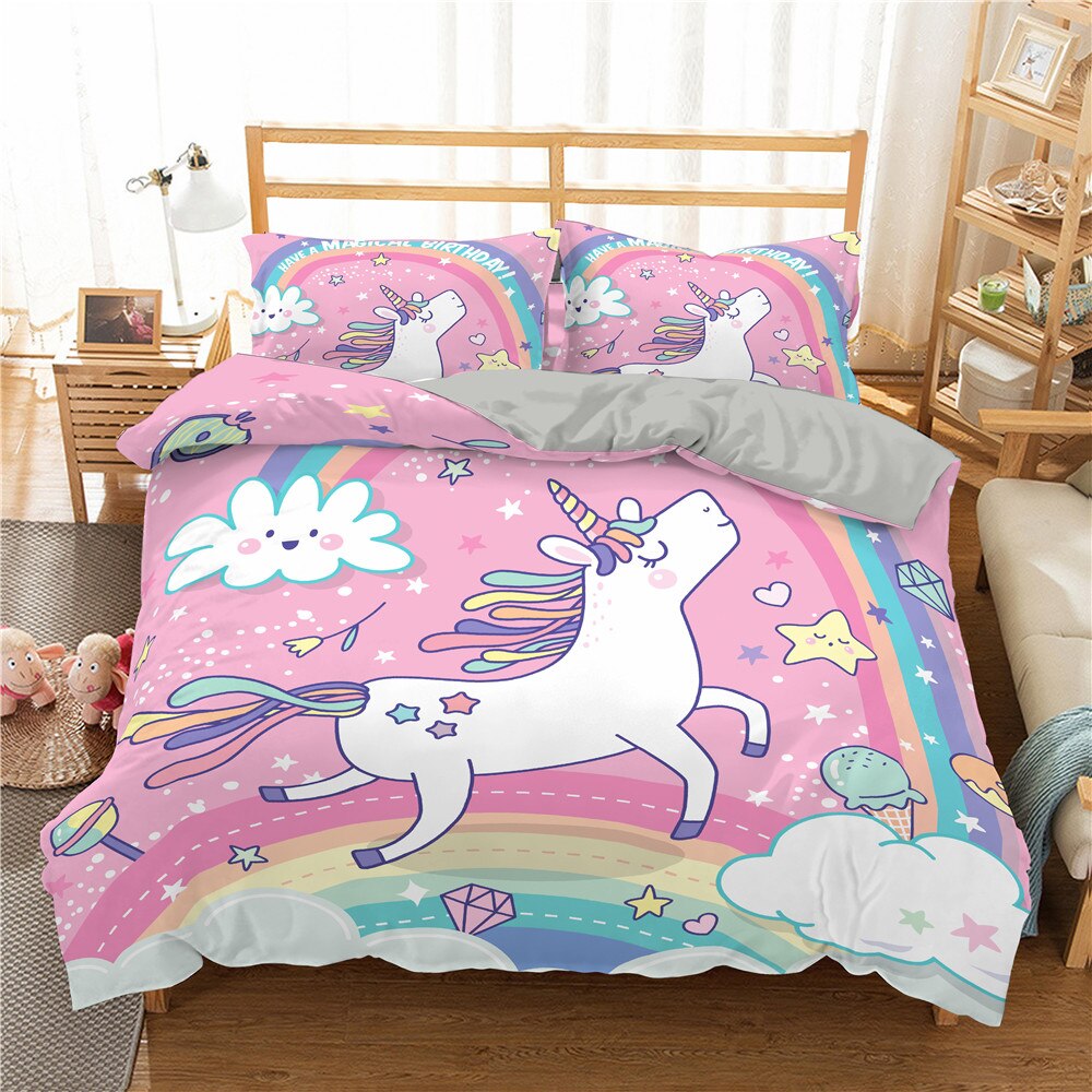 Cute Unicorn Bedding Set For //3D Cartoon Lovely Duvet Cover Set Twin Full Bed Bedspread Home Decor