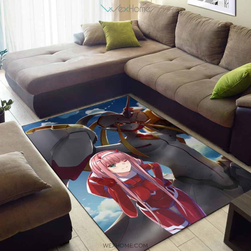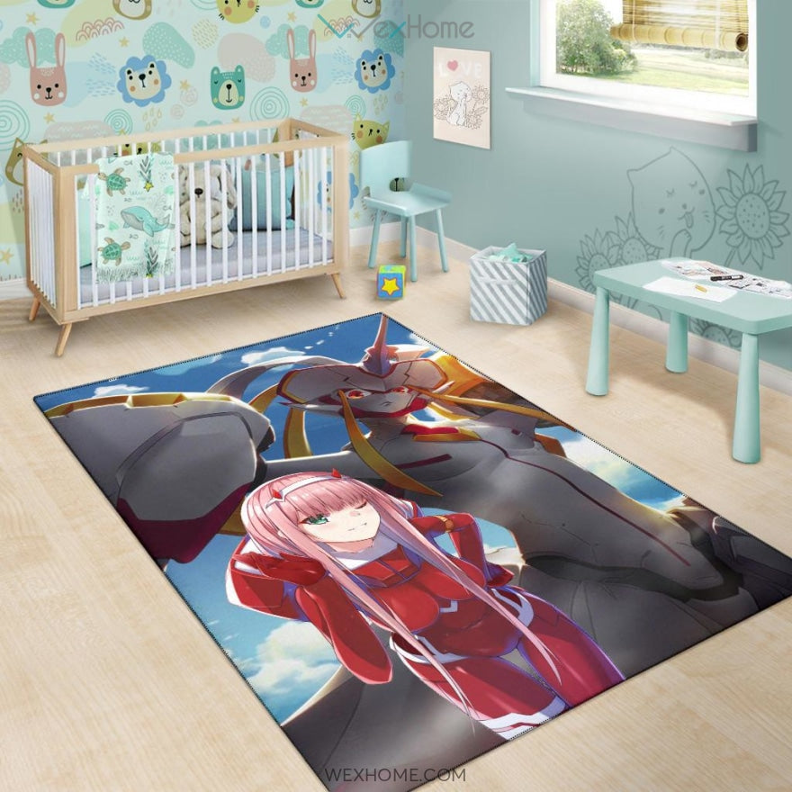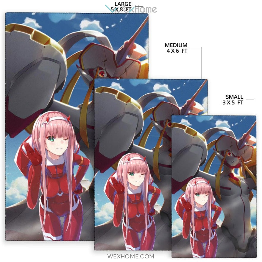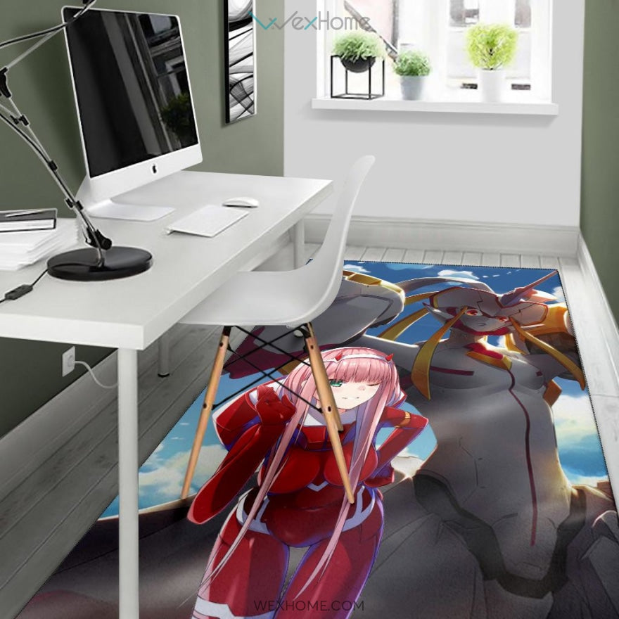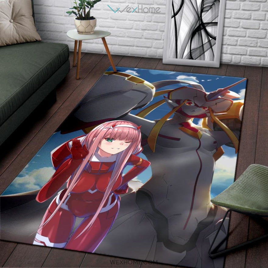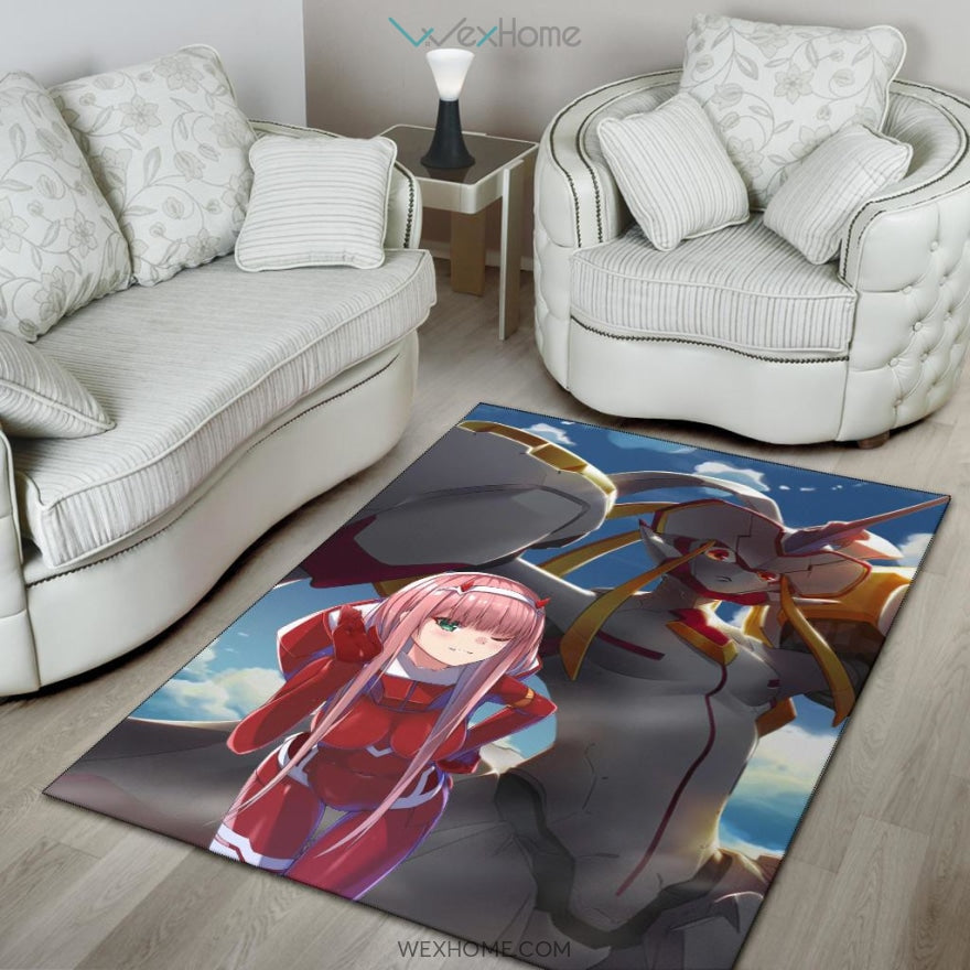 Style: Rug - Darling In The Franxx Anime Area Rug | Zero Two With Darling Strelitzia Shadow Face Rugs Home Decor NA082504