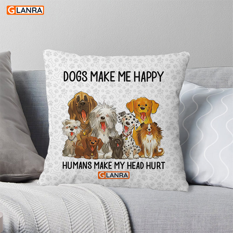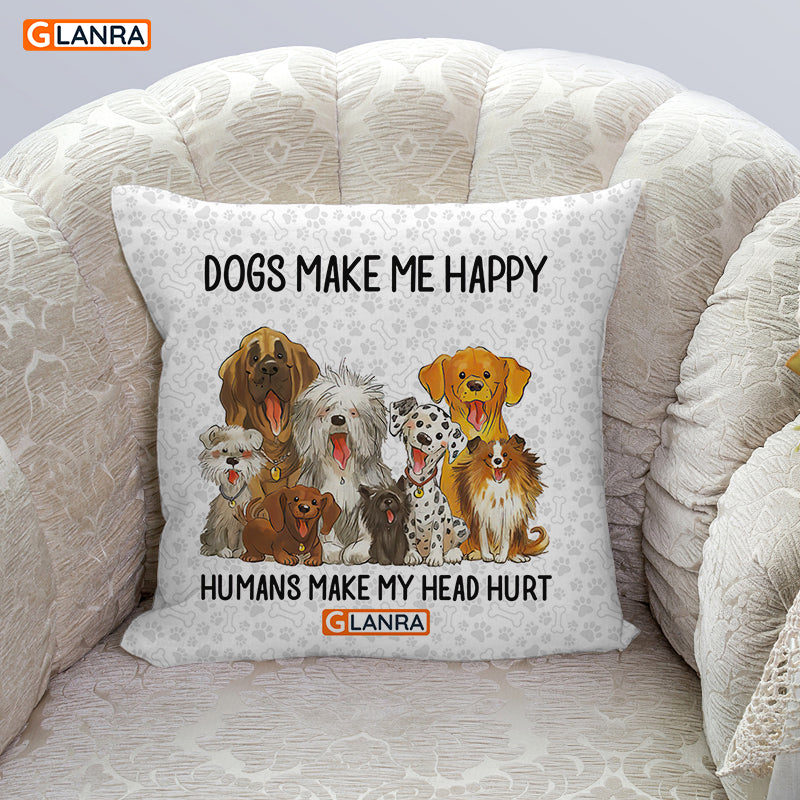 Dogs Make Me Happy Humans Make My Head Hurt Pillow, Custom Dog Pillow, Dog Lover Gift, Gift For Her, Pillow Cover, Indoor Home Decor, Anniversary Gift