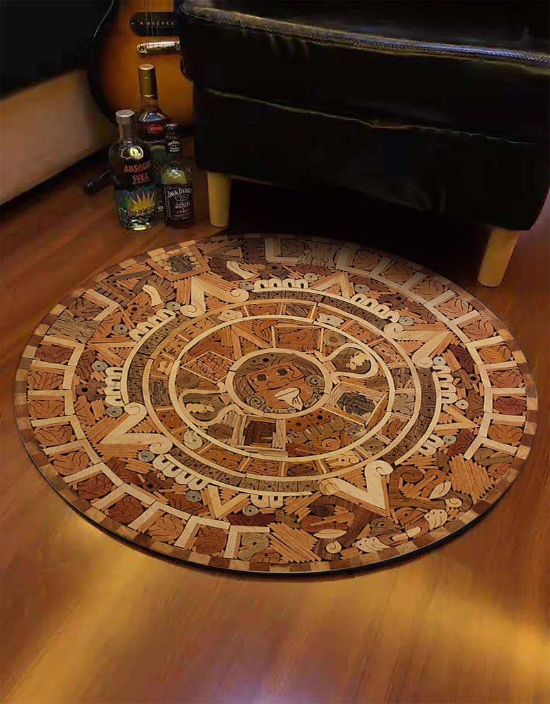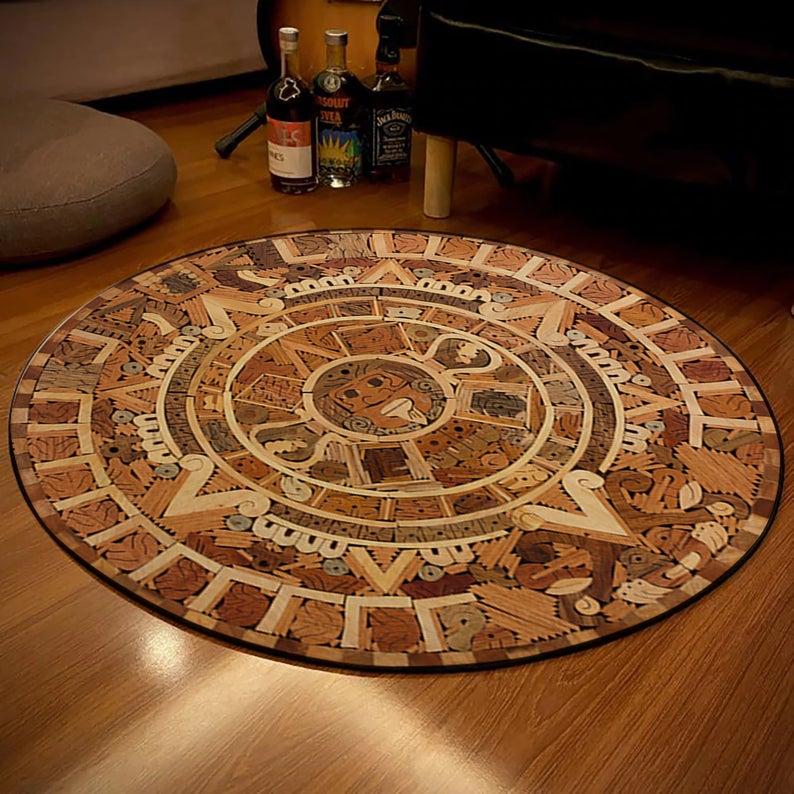 Ethnic Tribal Rug, Aztec Rug, Ancient Carpet, Modern Decorative Round Rug, Home Décor, Living Room Floor Area Rug, Office Décor