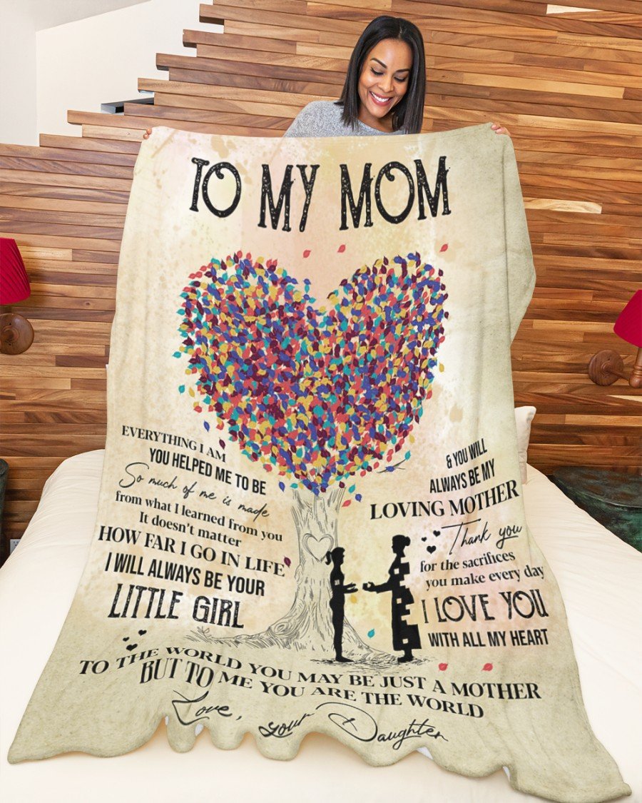 Everything I Am U Helped Me To Be Fleece Blanket – Quilt Blanket, Mother’s Day Gift From Daughter To Mom, Thank You Gifts For Mother’s Day, Home Decor Bedding Couch Sofa Soft and Comfy Cozy