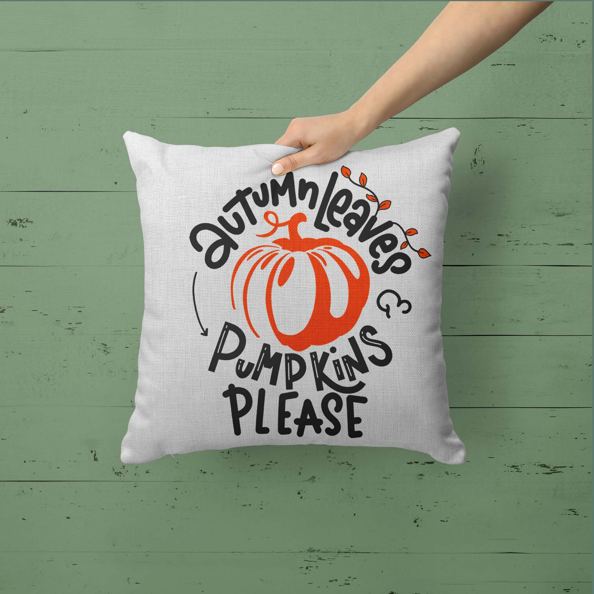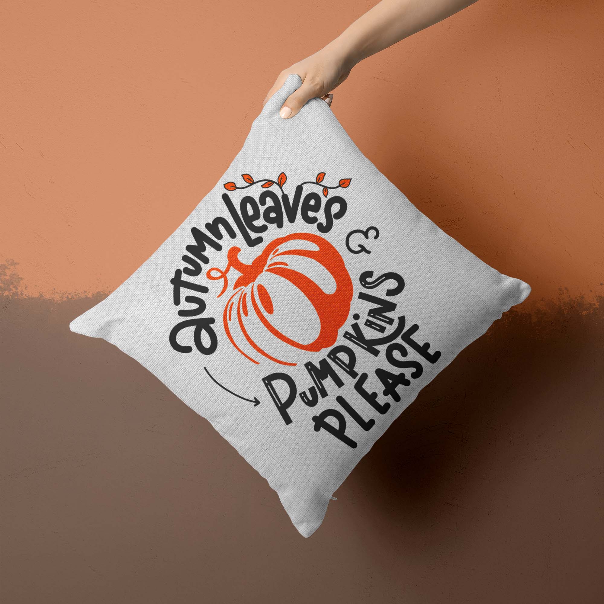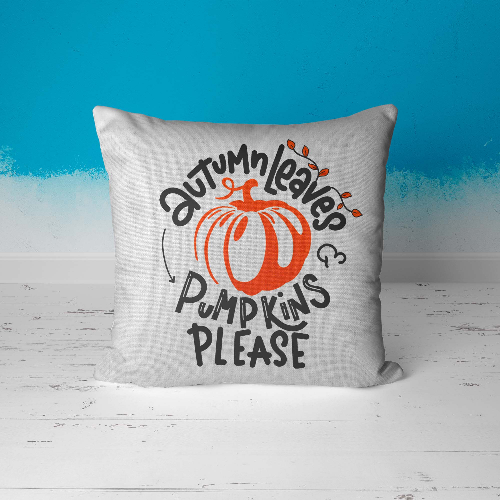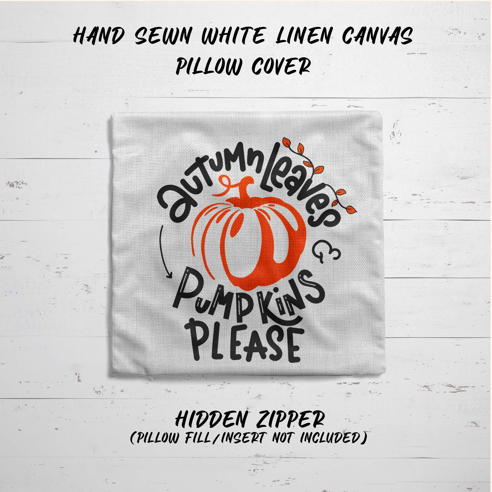 Fall Pillow Cover Autumn Leaves Pillow Case Pumpkins Throw Pillow Pumpkins Please Shirt Cute Fall Home Decor 16″ Square Linen