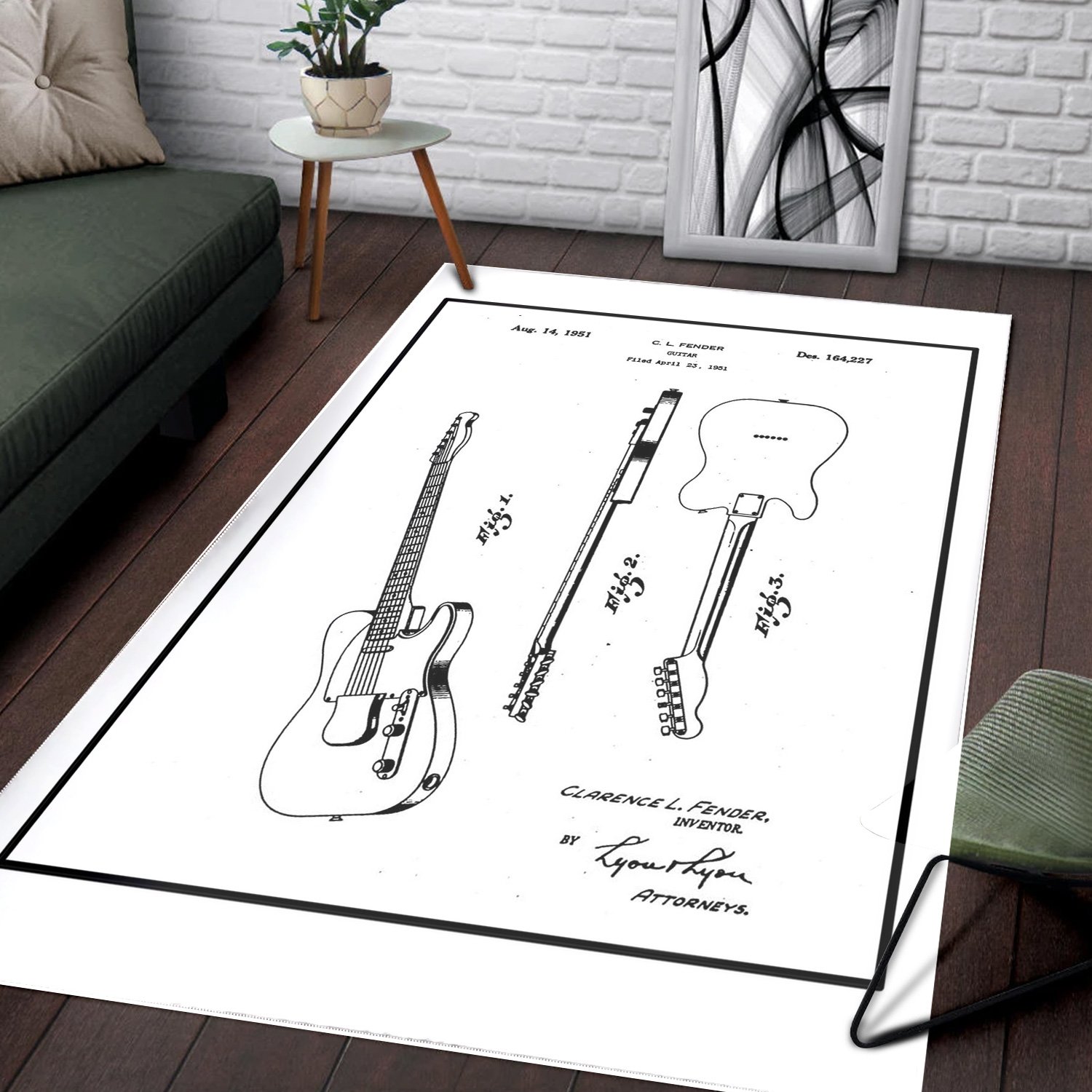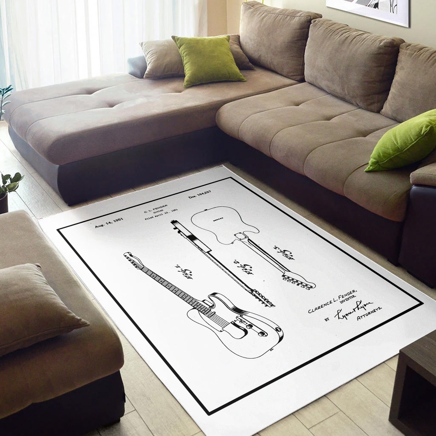 Fender Guitar On White Rug, Living Room Rug, Home Decor
