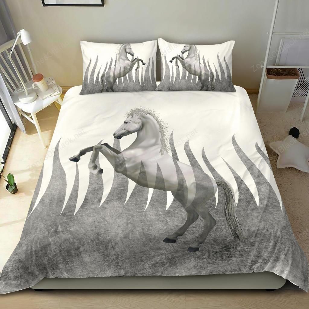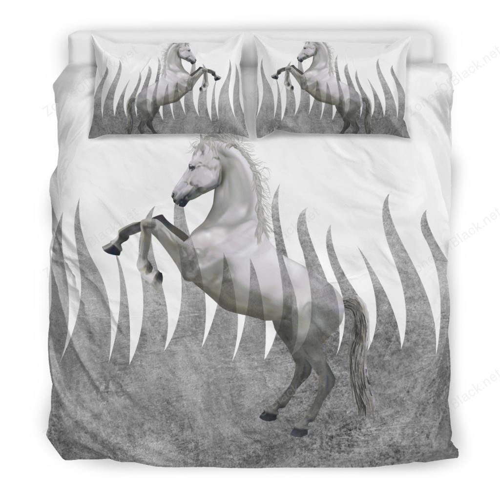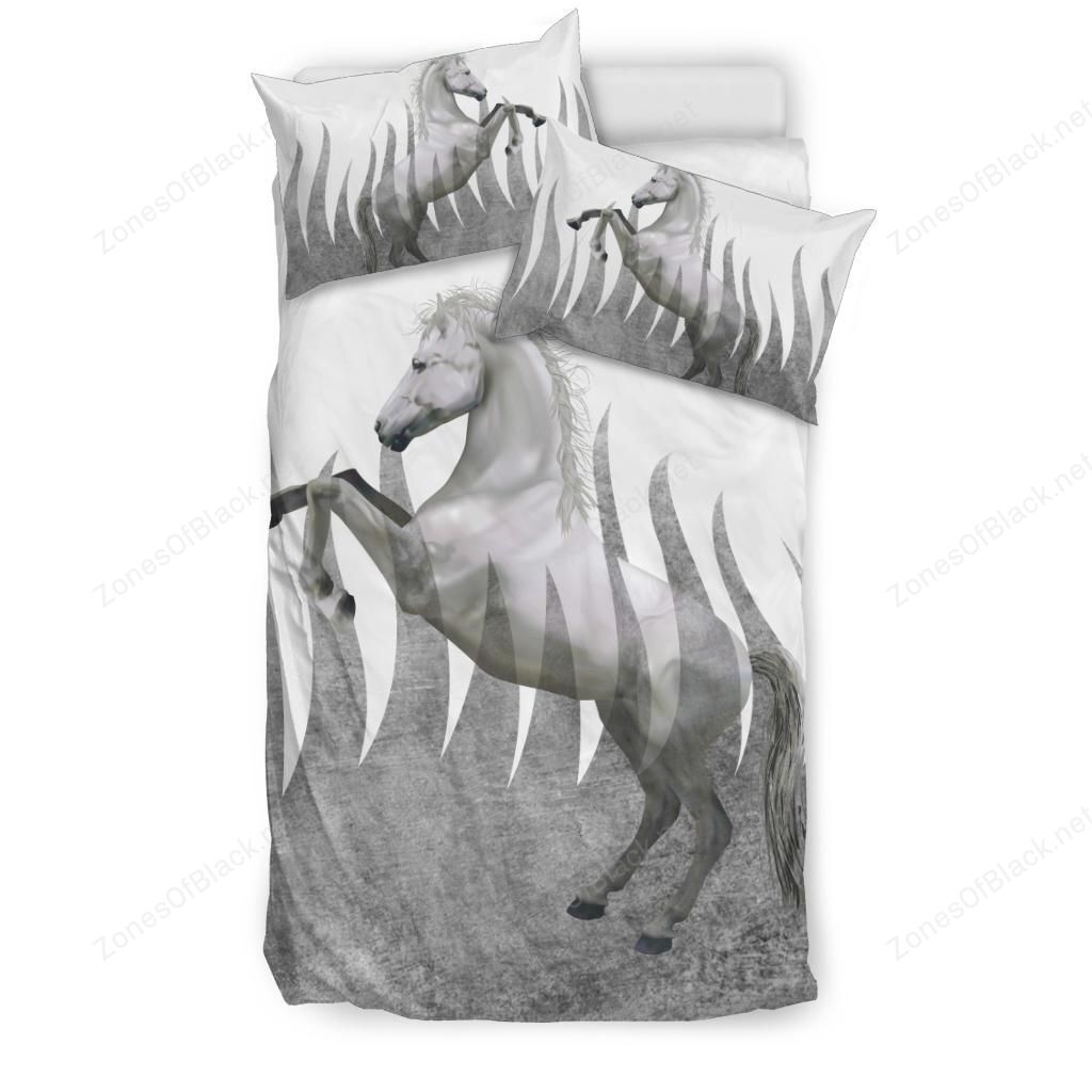Flame Horse Freedom White Gray 3D Printed Duvet Cover Set Bedroom Home Decor