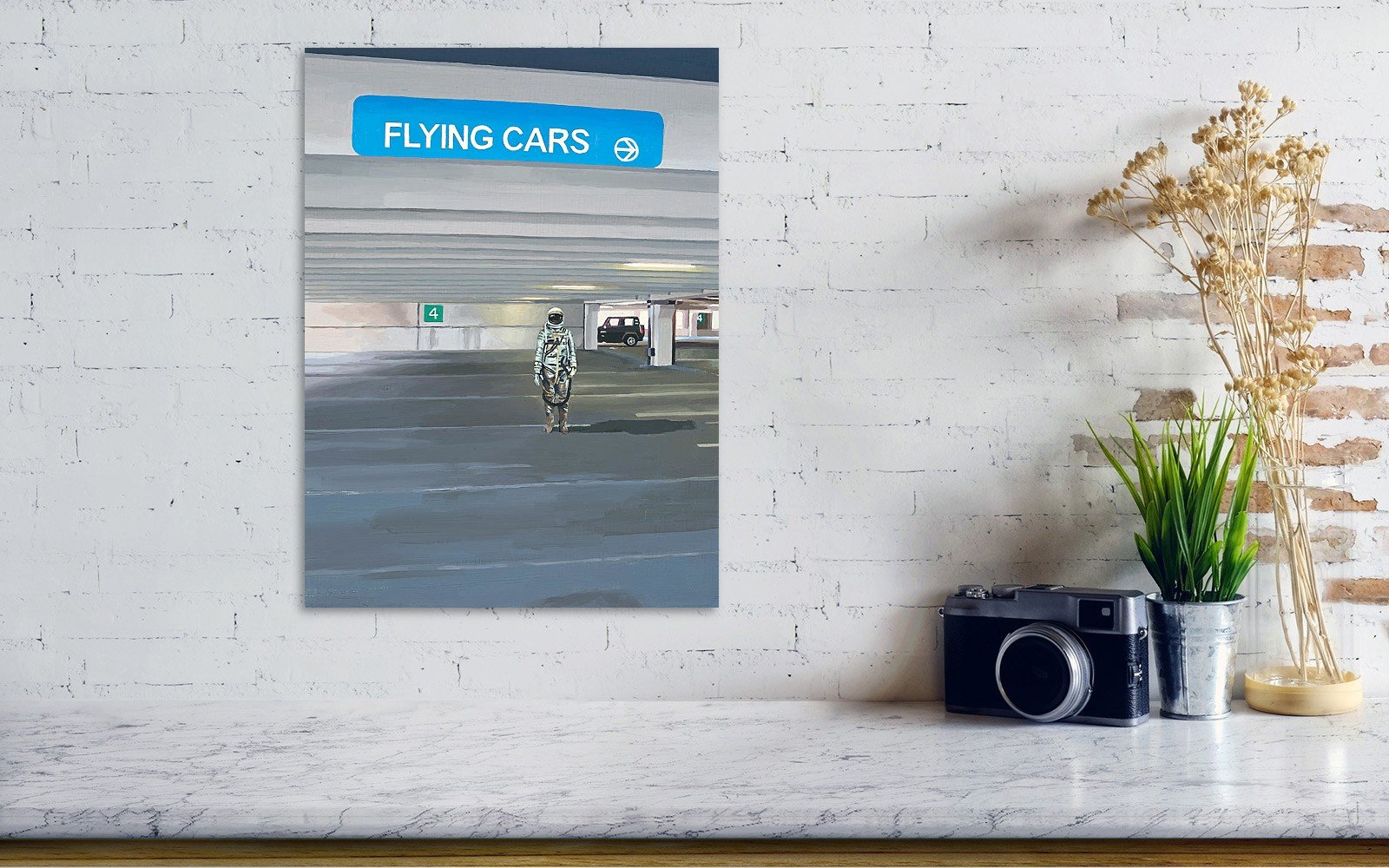 Flying Cars To The Right Art Print Canvas And Poster, Warm Home Decor Wall Art Visual Art
