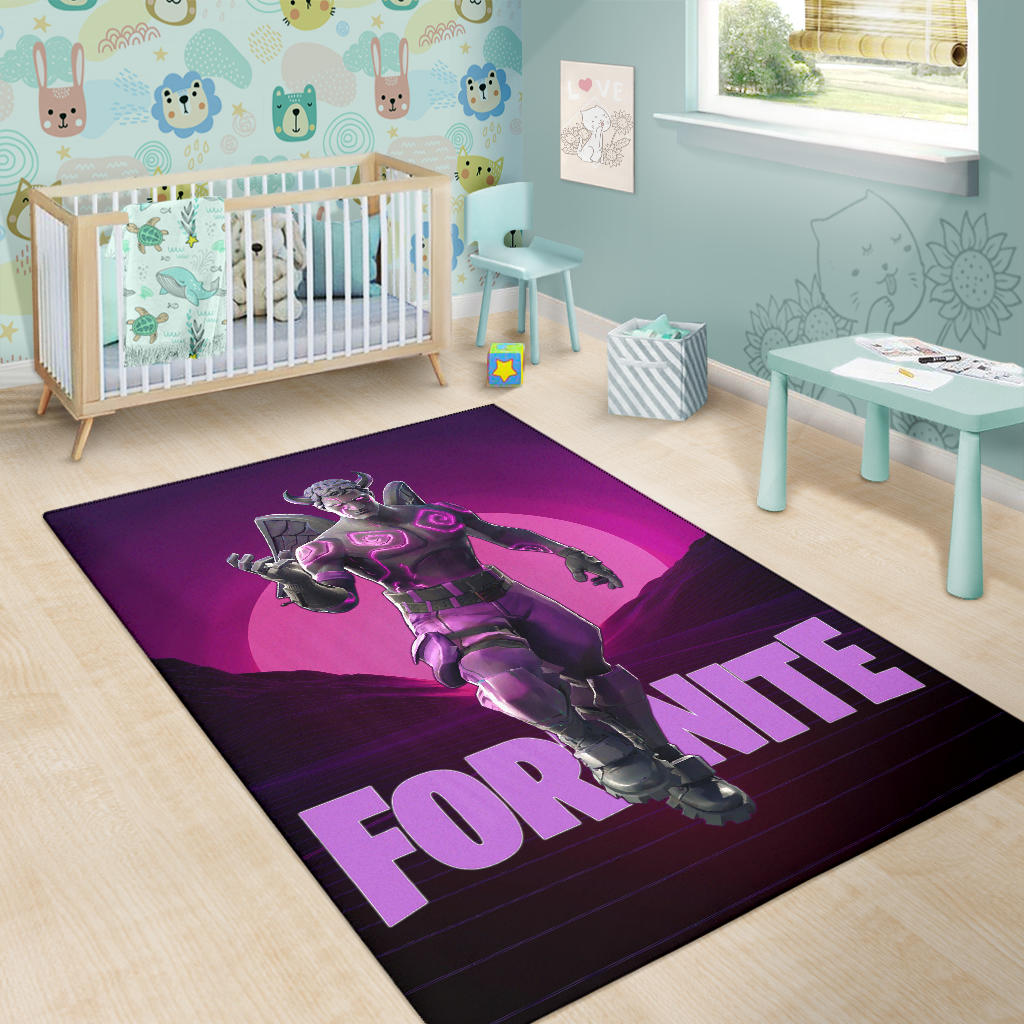 Fortnite Game Area Rug – The Fallen Love Ranger Skin Outfit Purple Theme Rugs Home Decor