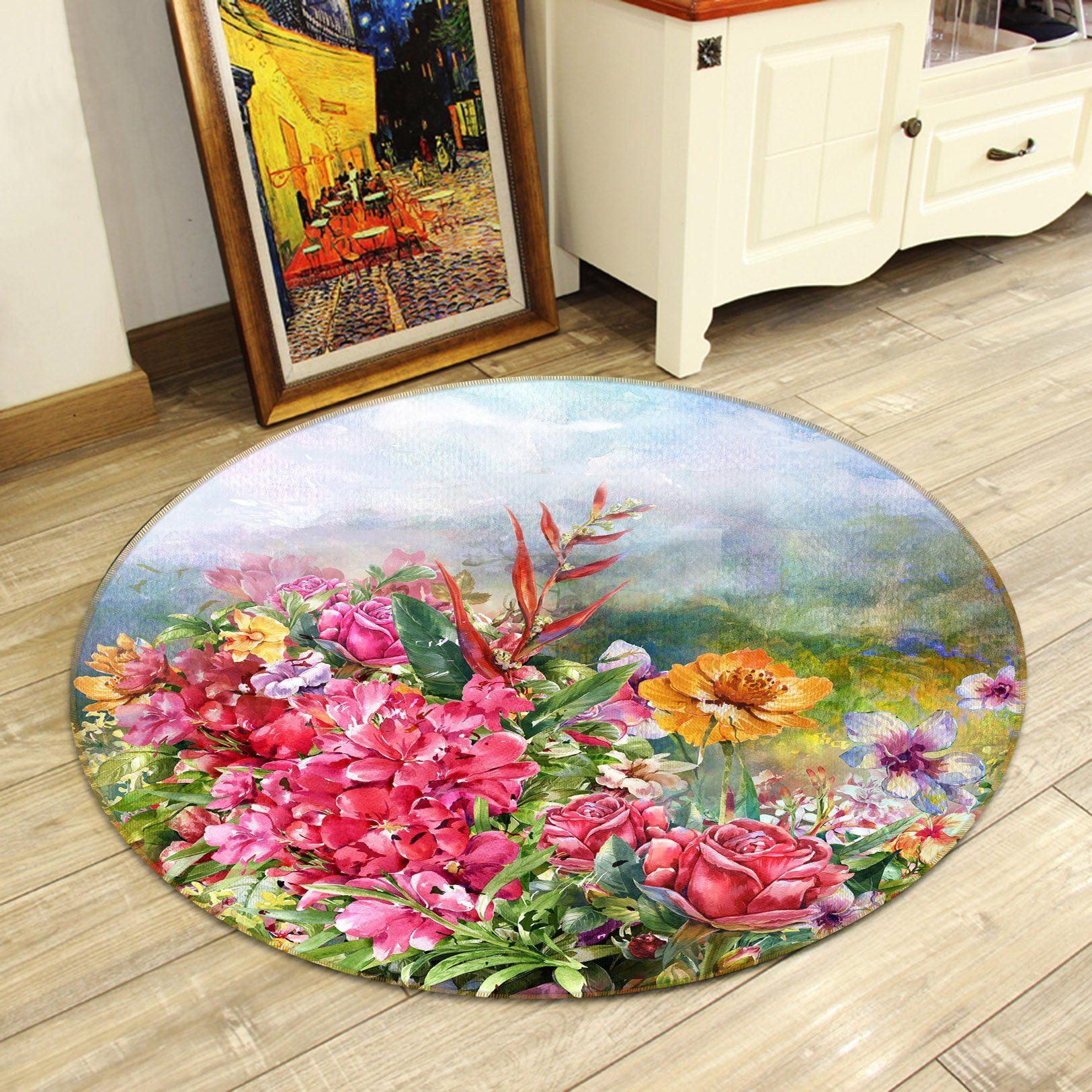 Fresh Morning With Flower Bush Round Rug – Round Carpet Home Decor