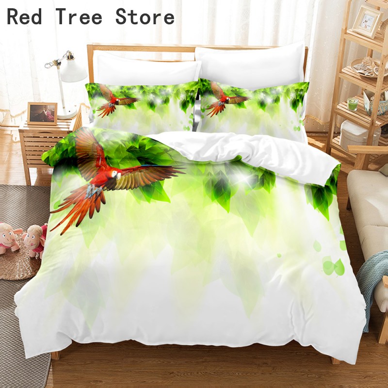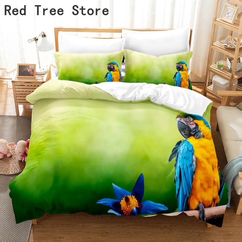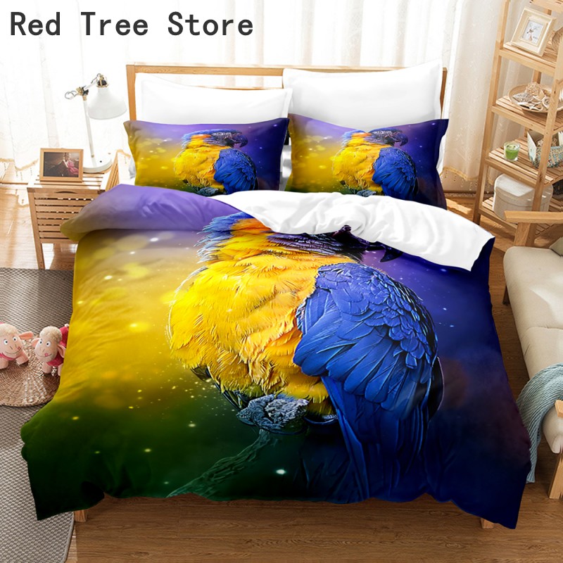 Full King Queen Size Two Parrots 3D Bedding Set Bedspread Duvet Cover With Pillowcase High Quality Polyester Fabric Home Decor