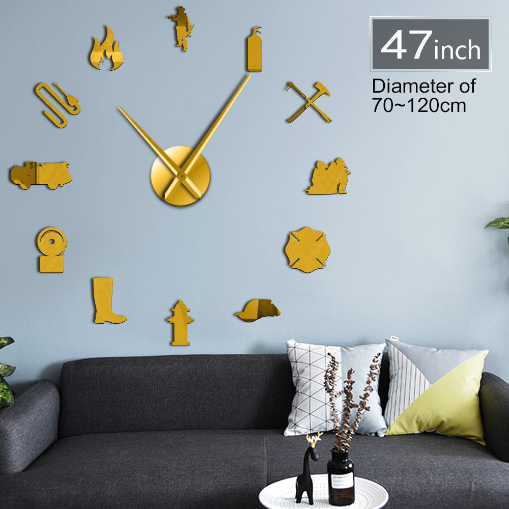 Giant Fireman Profession 3D Diy Firefighter Gift For Him Home Decor Wall Clock A69