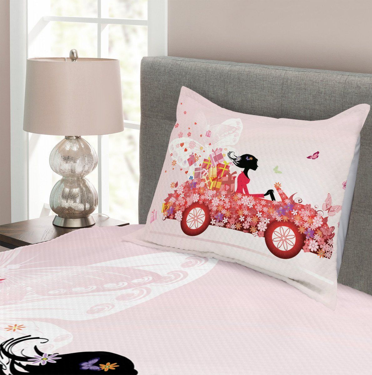 Girl On A Car Floral Box Printed Bedspread Set Home Decor