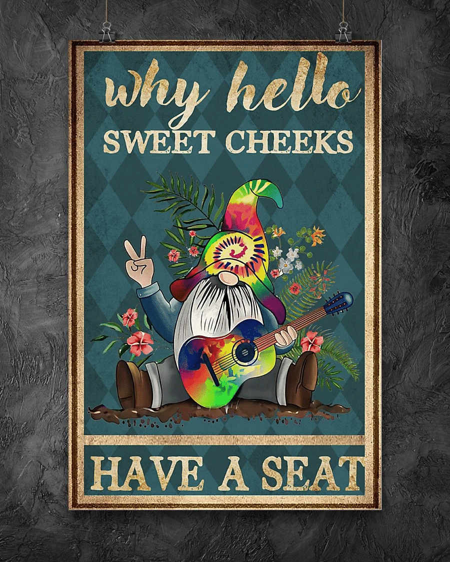 Gnome Loves Poster Canvas – Why Hello Sweet Cheeks Have A Seat Vintage Home Decor Wall Art Evg80259