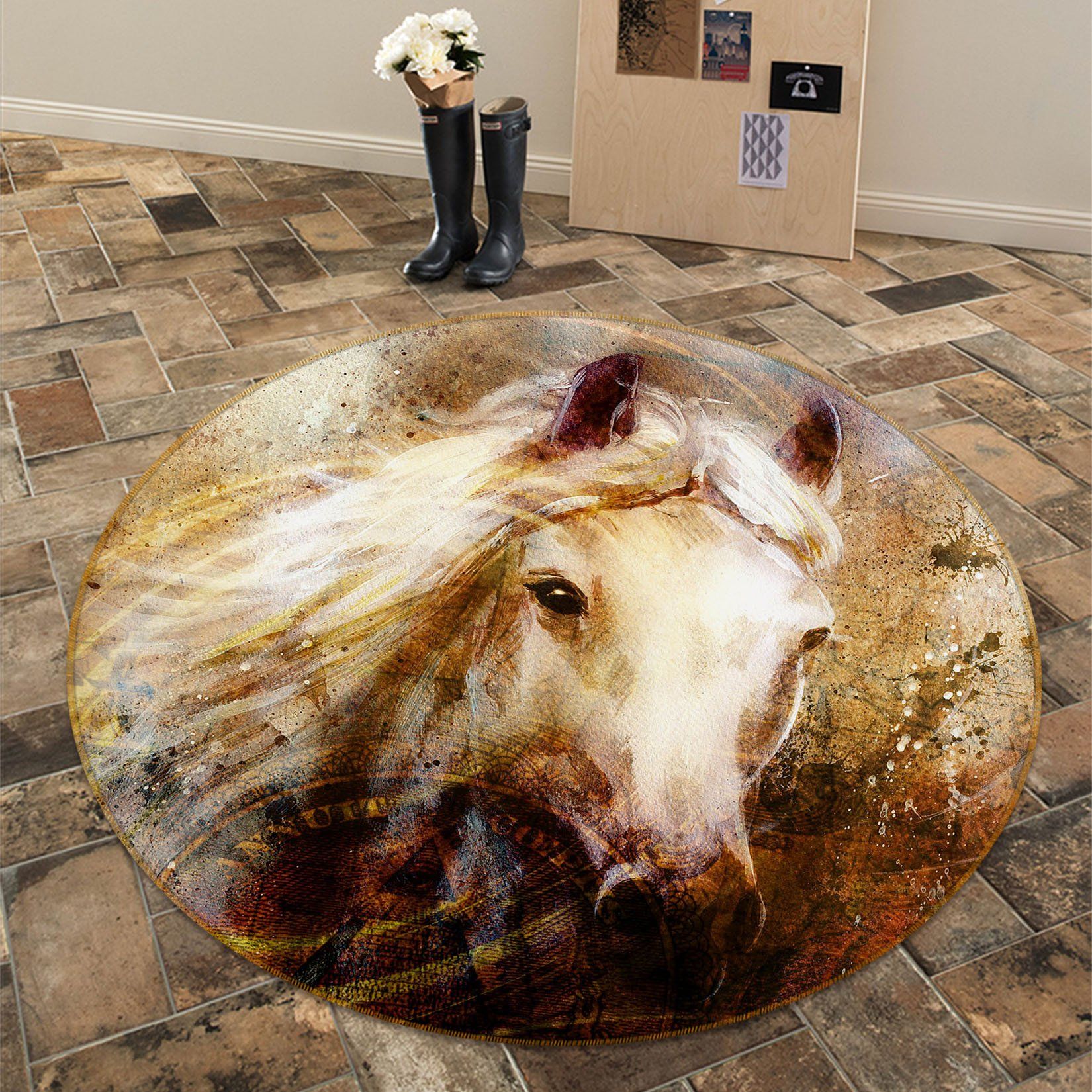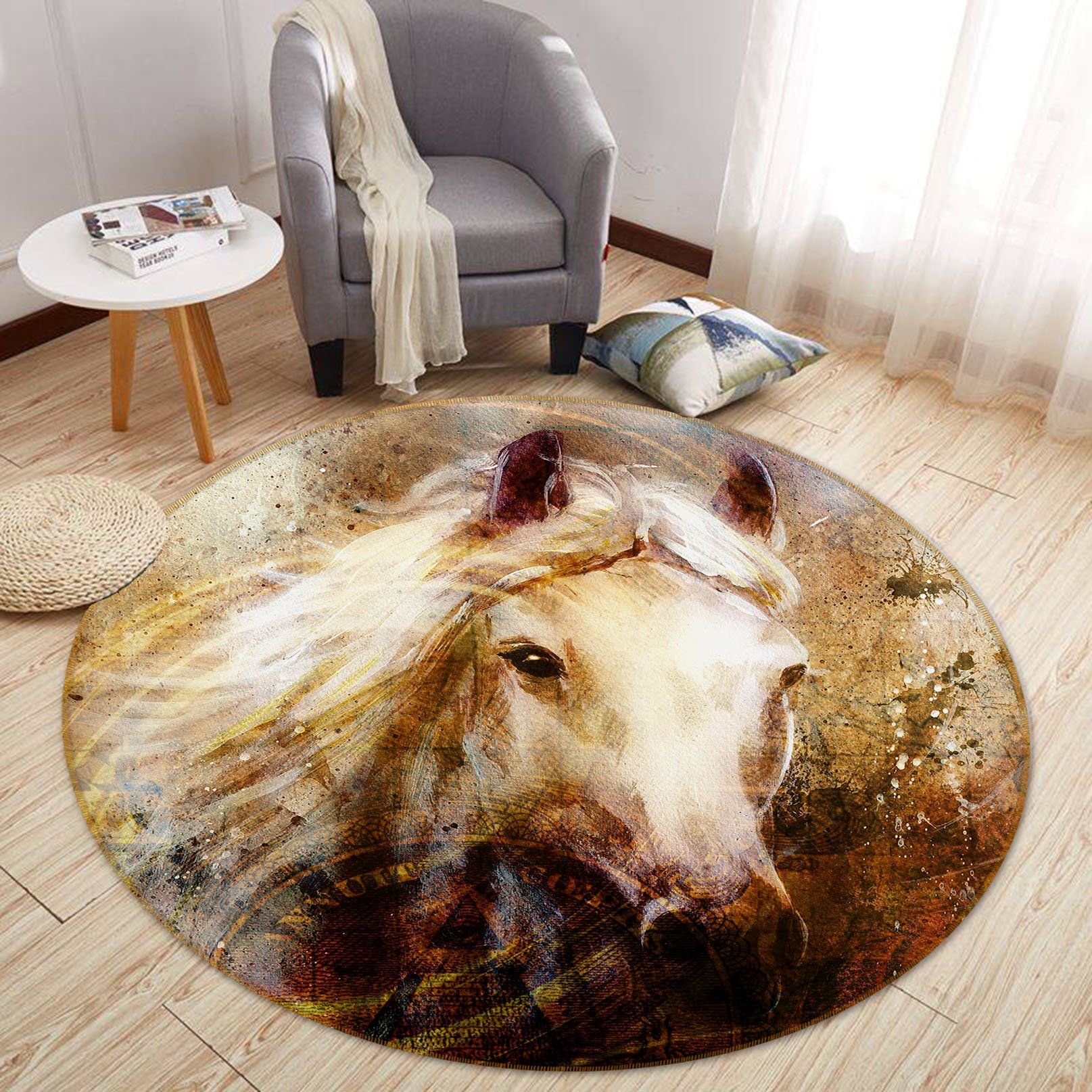 Grunge Taupe Horse Round Rug Home Decor