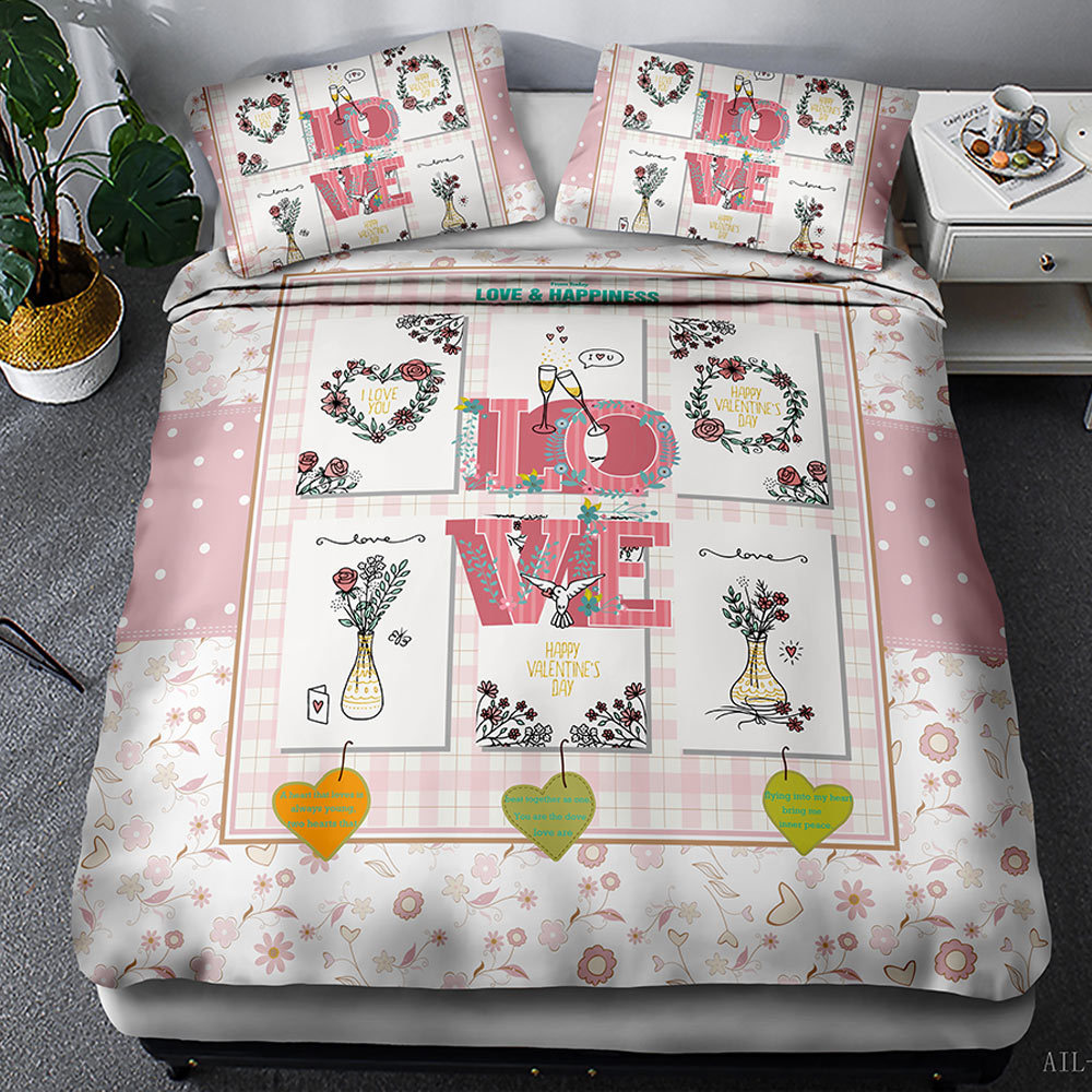 Happy Valentine’S Day Bedding Set 3D Digital Printing With Pillowcase Cute Bedroom Home Decoration Couple Marry Duvet Covers
