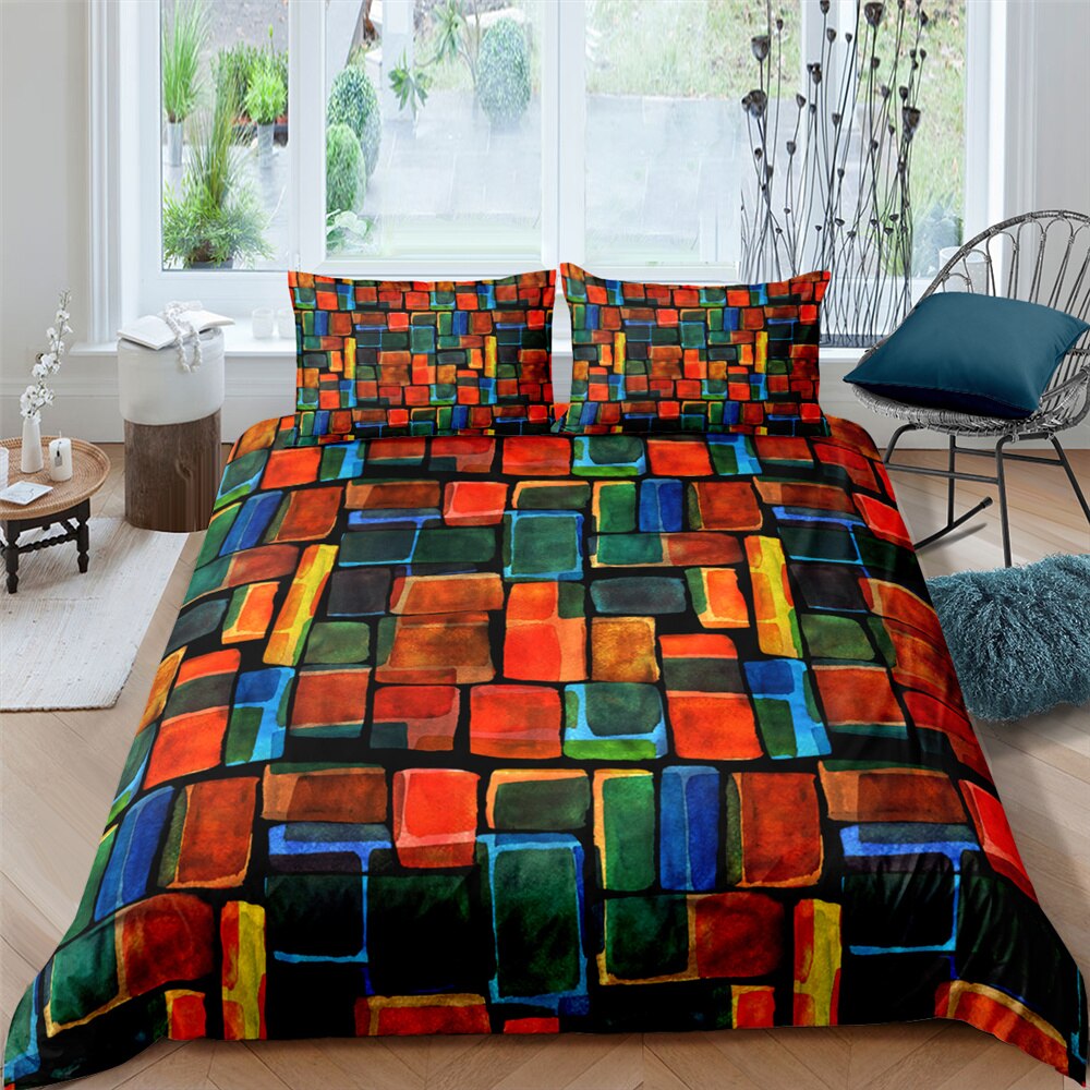 Home Decor Colorful Geometric Bedding Set Queen King Soft Bedclothes Twin Patchwork Duvet Cover With Pillowcases