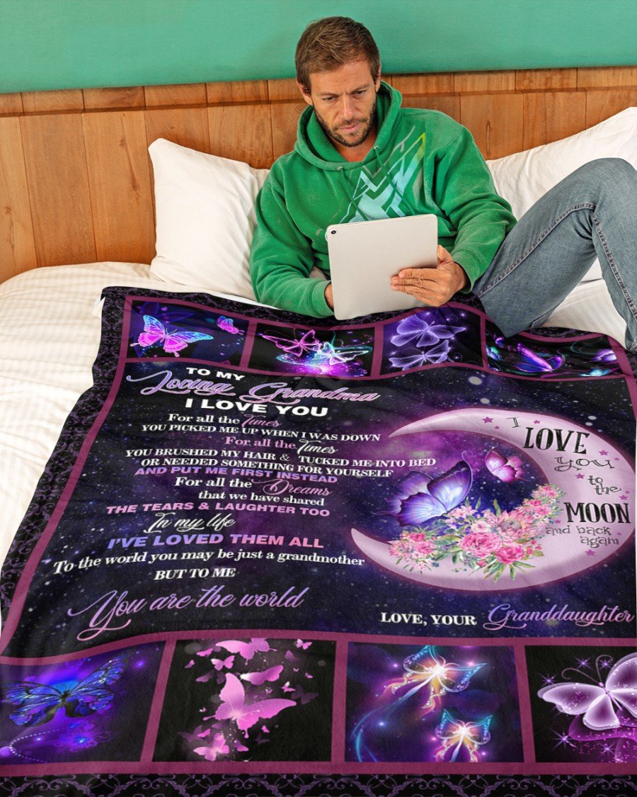 I Love You To The Moon And Back Fleece Blanket – Quilt Blanket, Happy Mother’s Day Ideas, Mother’s Day Gift From Granddaughter To Grandma, Home Decor Bedding Couch Sofa Soft and Comfy Cozy