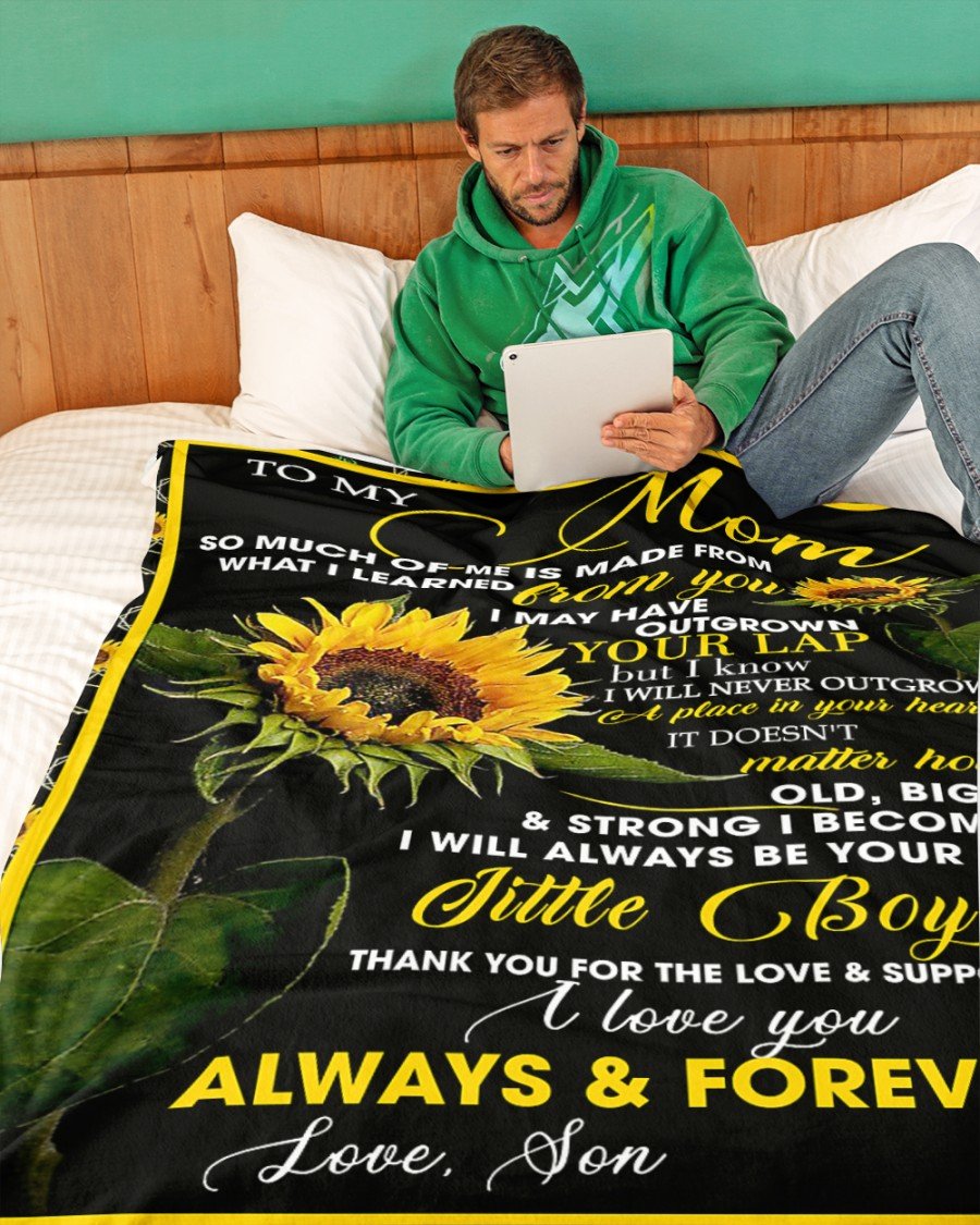 I Will Always Your Little Boy Fleece Blanket – Quilt Blanket, Happy Mother’s Day Ideas, Mother’s Day Gift From Son To Mom, Home Decor Bedding Couch Sofa Soft and Comfy Cozy