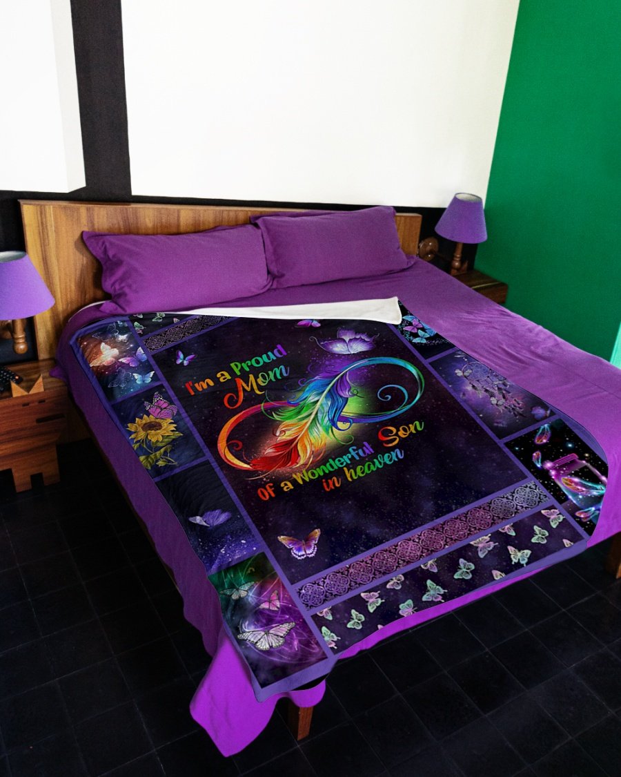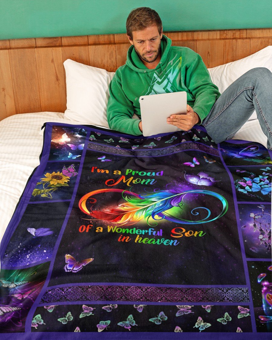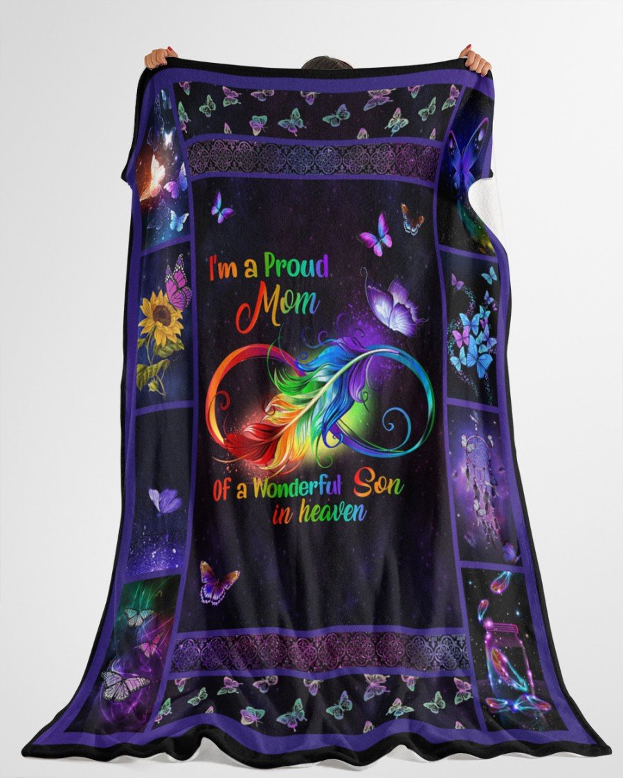 I’m A Proud Mom Of A Wonderful Son In Heaven Fleece Blanket – Quilt Blanket, Meaningful Mother’s Day Gift, Mother’s Day Gift From Son To Mom, Home Decor Bedding Couch Sofa Soft and Comfy Cozy