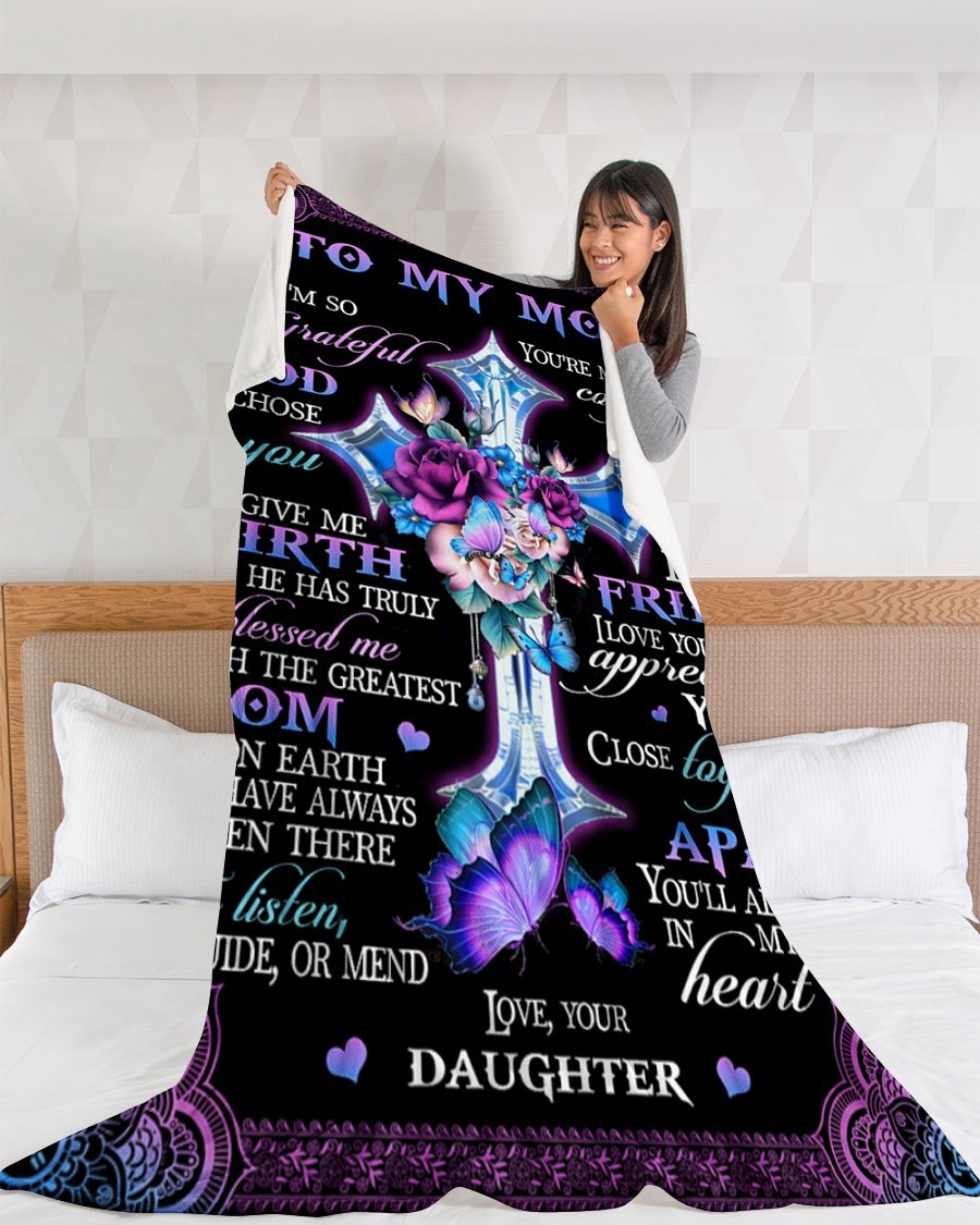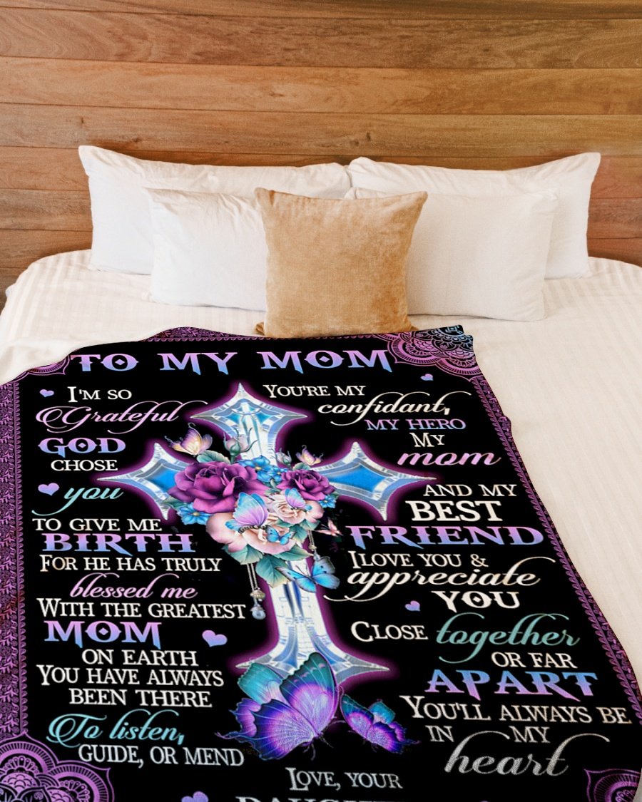 I’m So Grateful God Chose You Daughter To Mom Fleece Blanket – Quilt Blanket, Best Mother’s Day Gift Ideas, Meaningful Mother’s Day Gift, Home Decor Bedding Couch Sofa Soft and Comfy Cozy