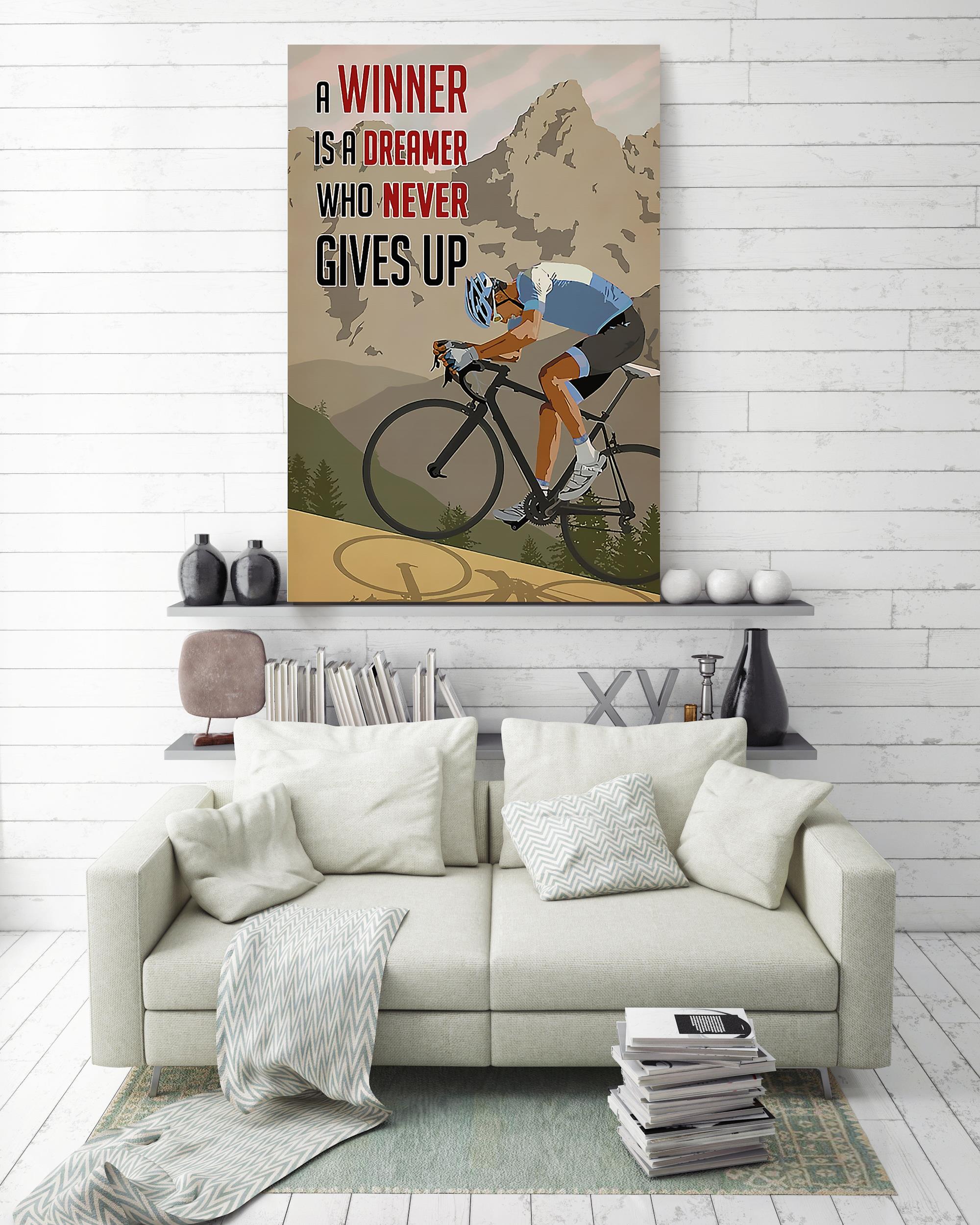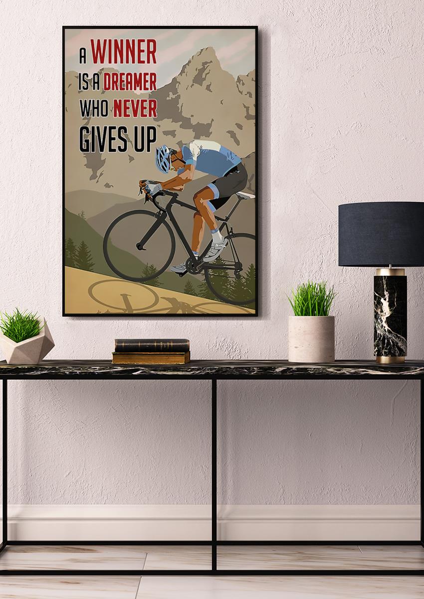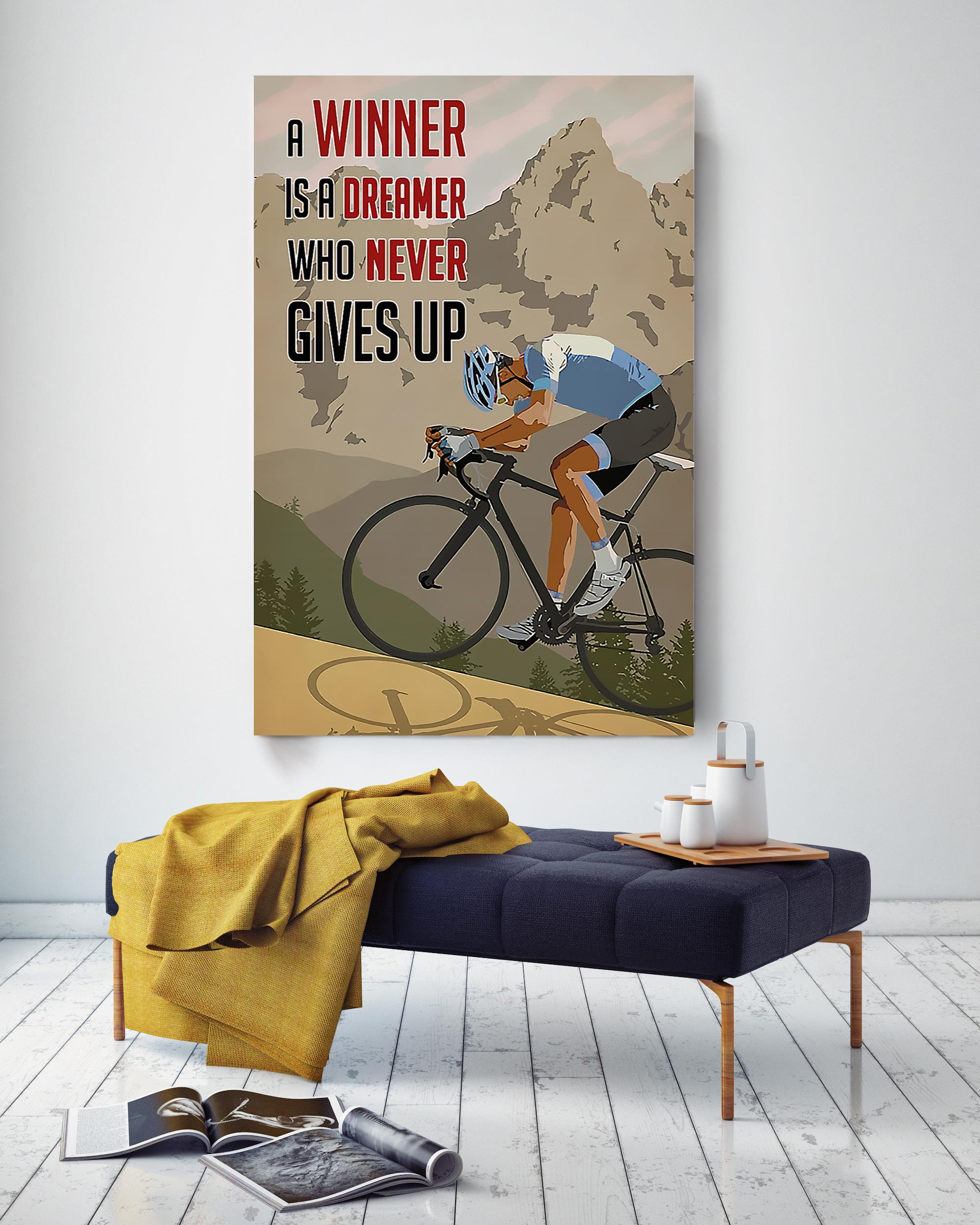 Inspirational Cycling Quotes A Winner Is A Dreamer Who Never Gives Up Wall Arrt For Home Decor Poster