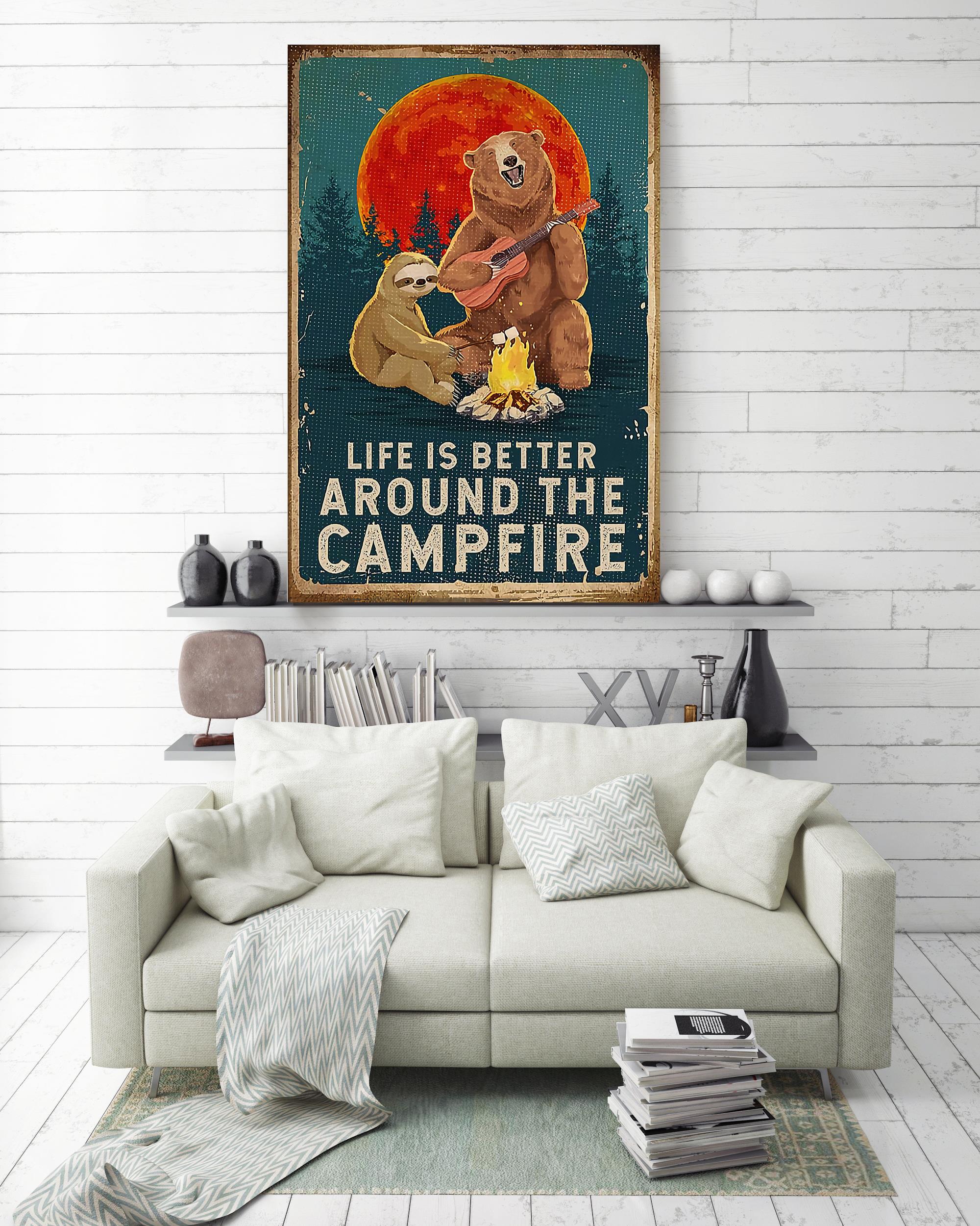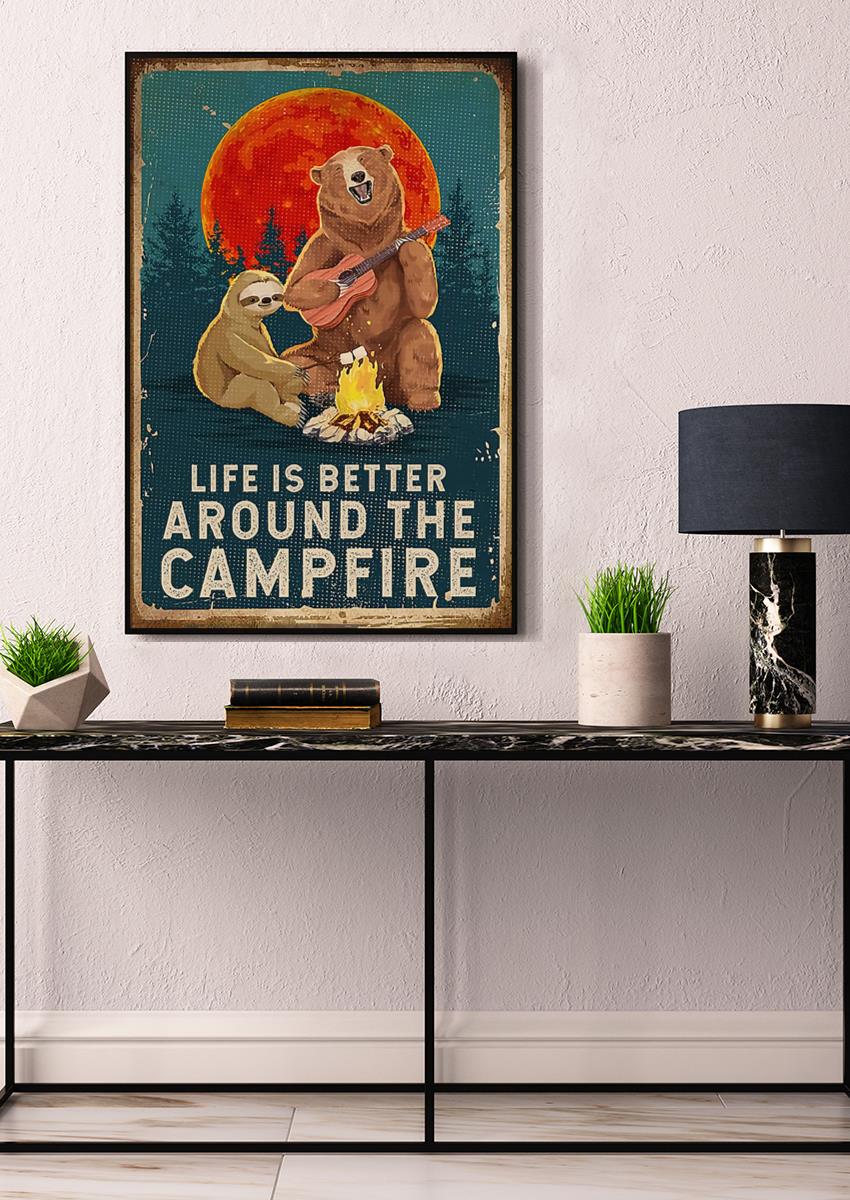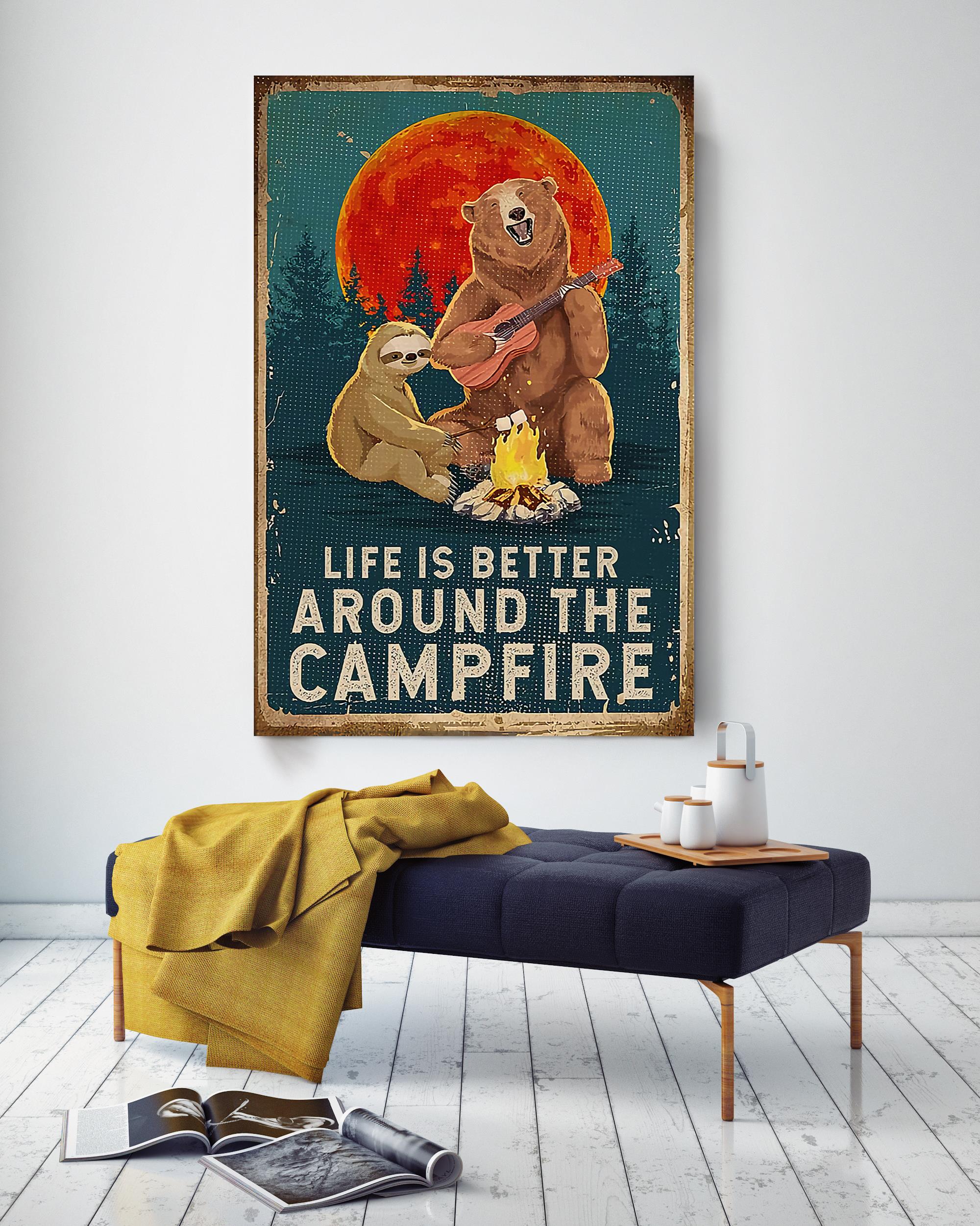 Life Is Better Around The Campfire Bear Wall Art For Bearing Lover Home Decor Poster